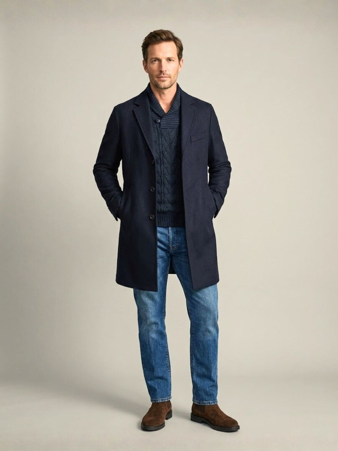 I cappotti realizzati in misto lana, soprattutto con lavorazioni spigate, offrono resistenza e comfort, mantenendo una presenza visiva discreta ma riconoscibile. Tonalità come blu navy, grigio e testa di moro garantiscono continuità nel tempo e si adattano con naturalezza sia a contesti formali sia a combinazioni più rilassate.