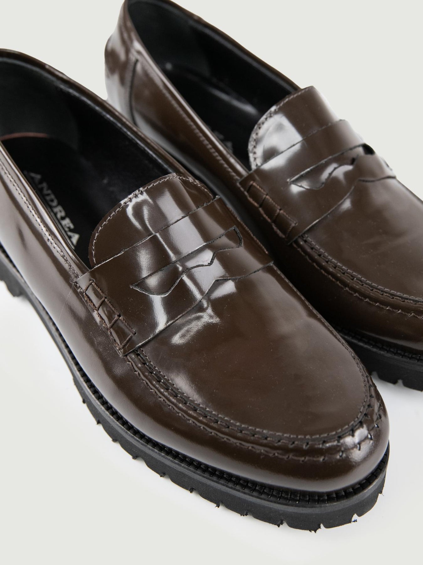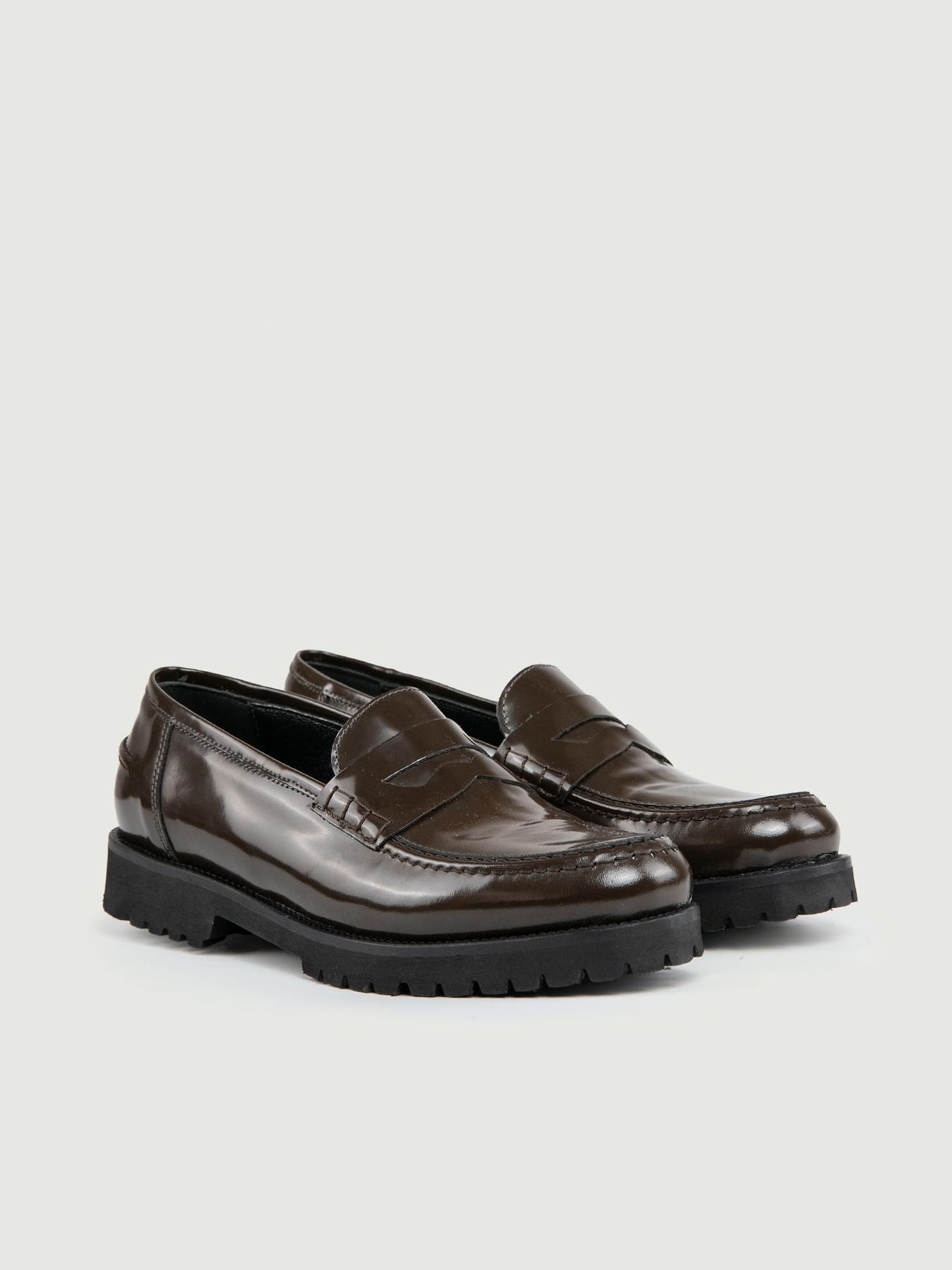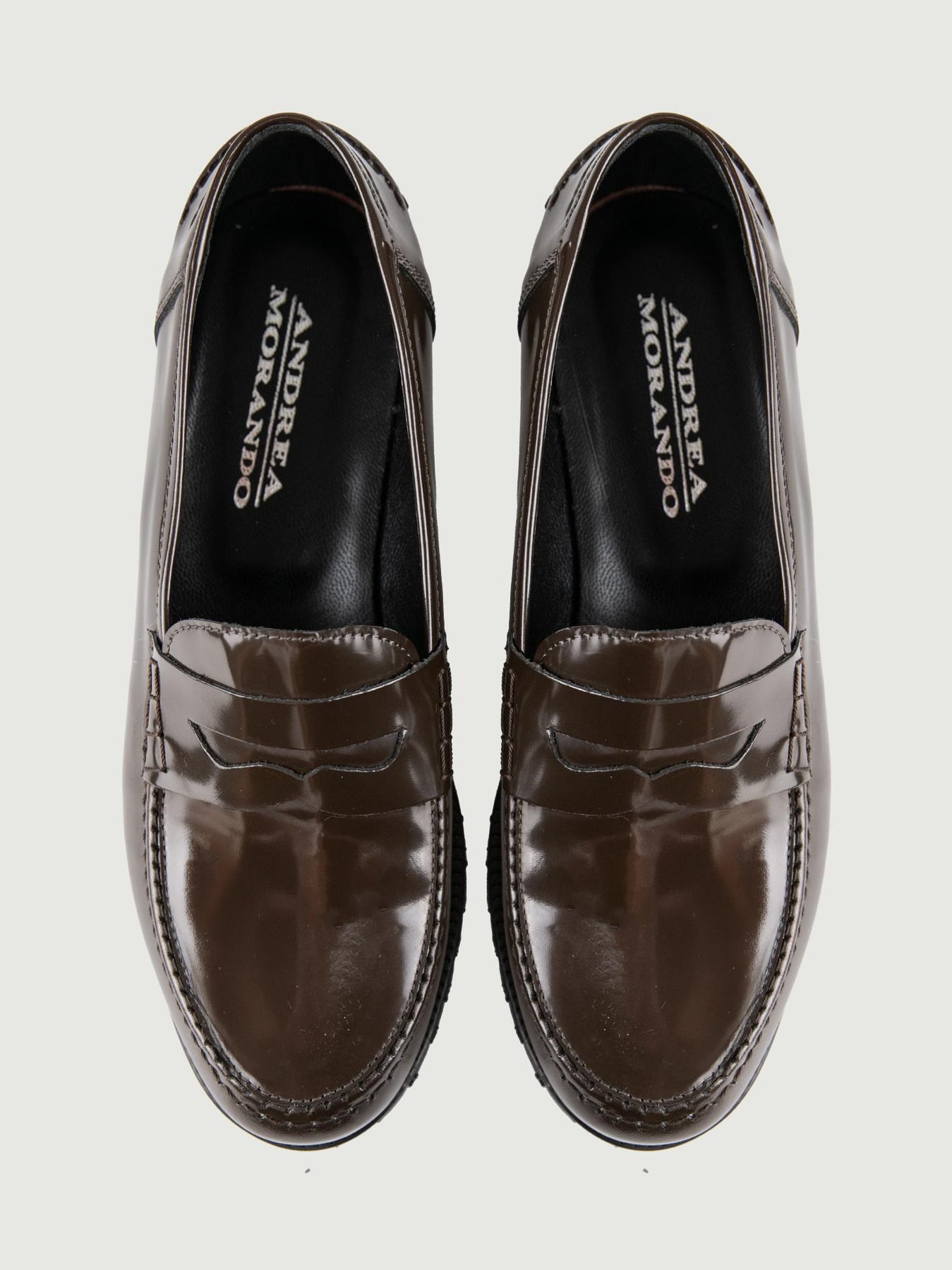 Mocassino penny in pelle spazzolata testa moro. Dettaglio cuciture a vista in tonalità. Tomaia: pelle. Fodera: pelle. Suola: gomma. Altezza para: 3 cm. Calzata regolare. Made in Italy. Designer: Andrea Morando