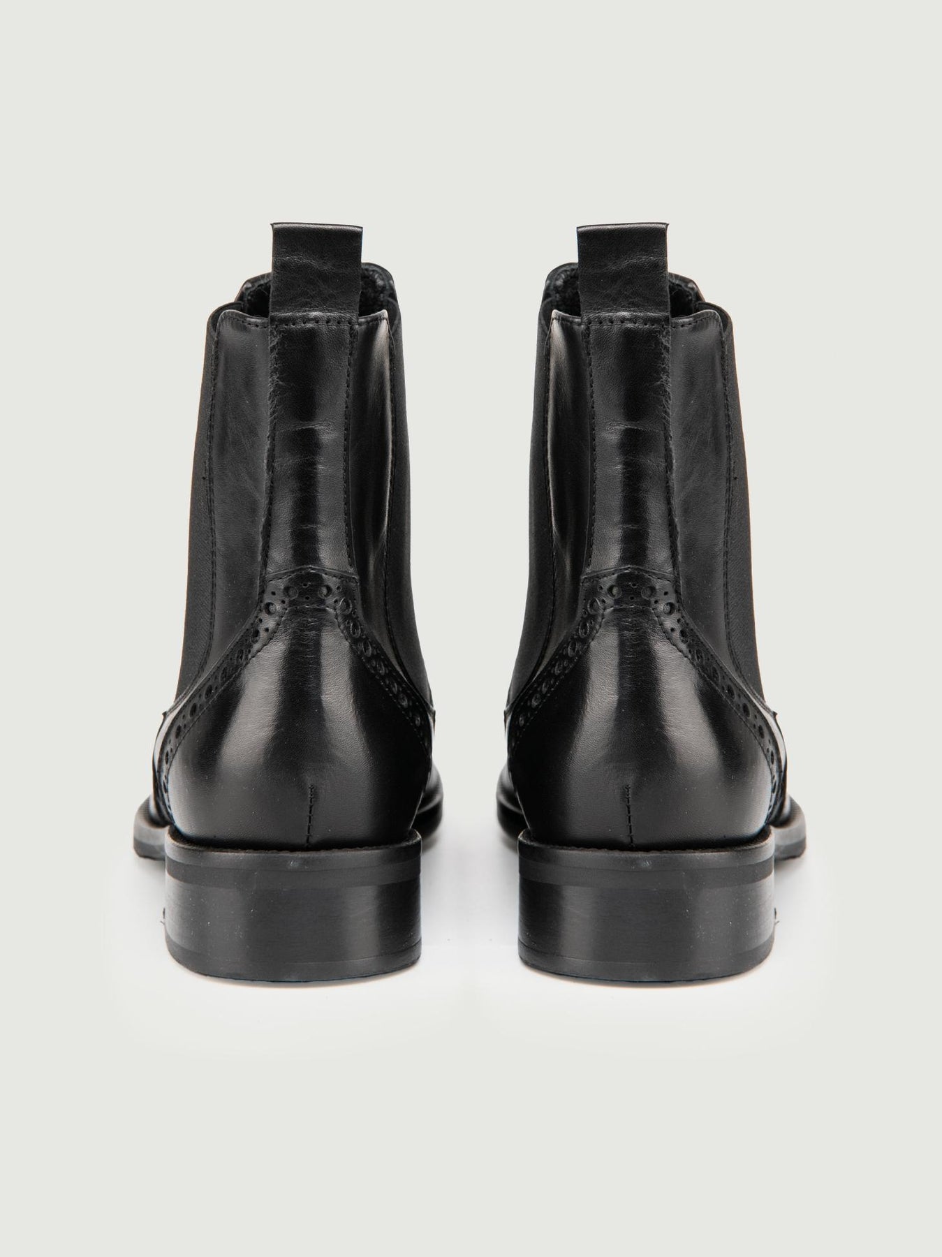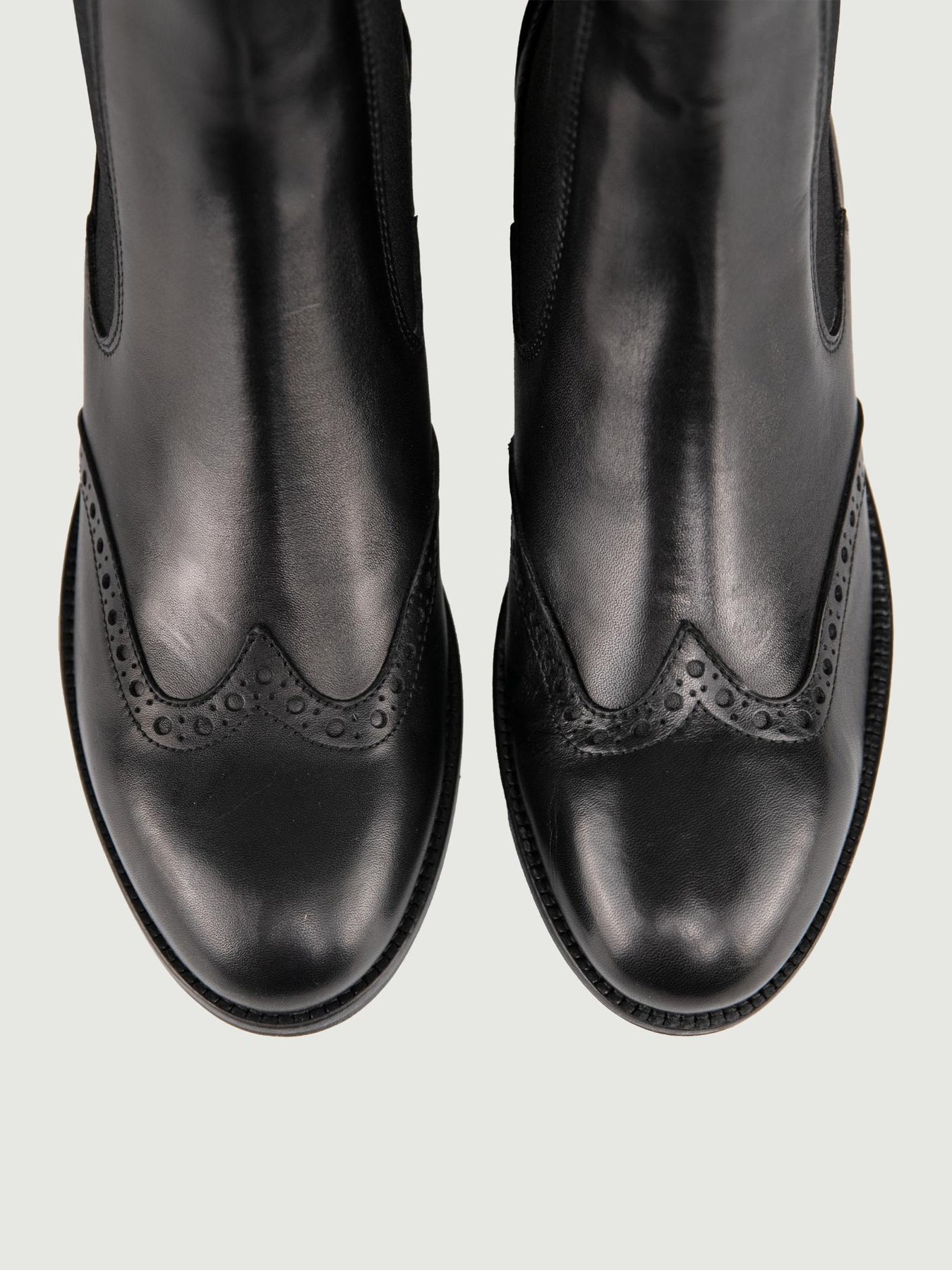 Stivaletto modello beatles in pelle nera con dettaglio coda di rondine.