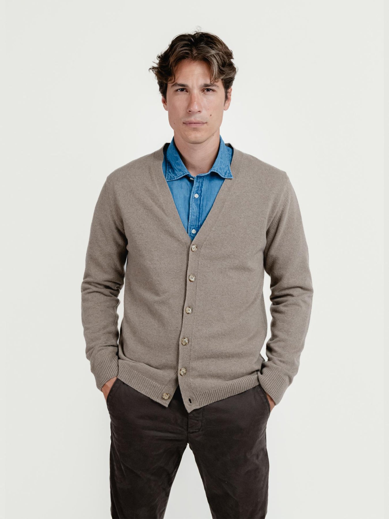 CARDIGAN IN LANA MERINO E CASHMERE SABBIA
