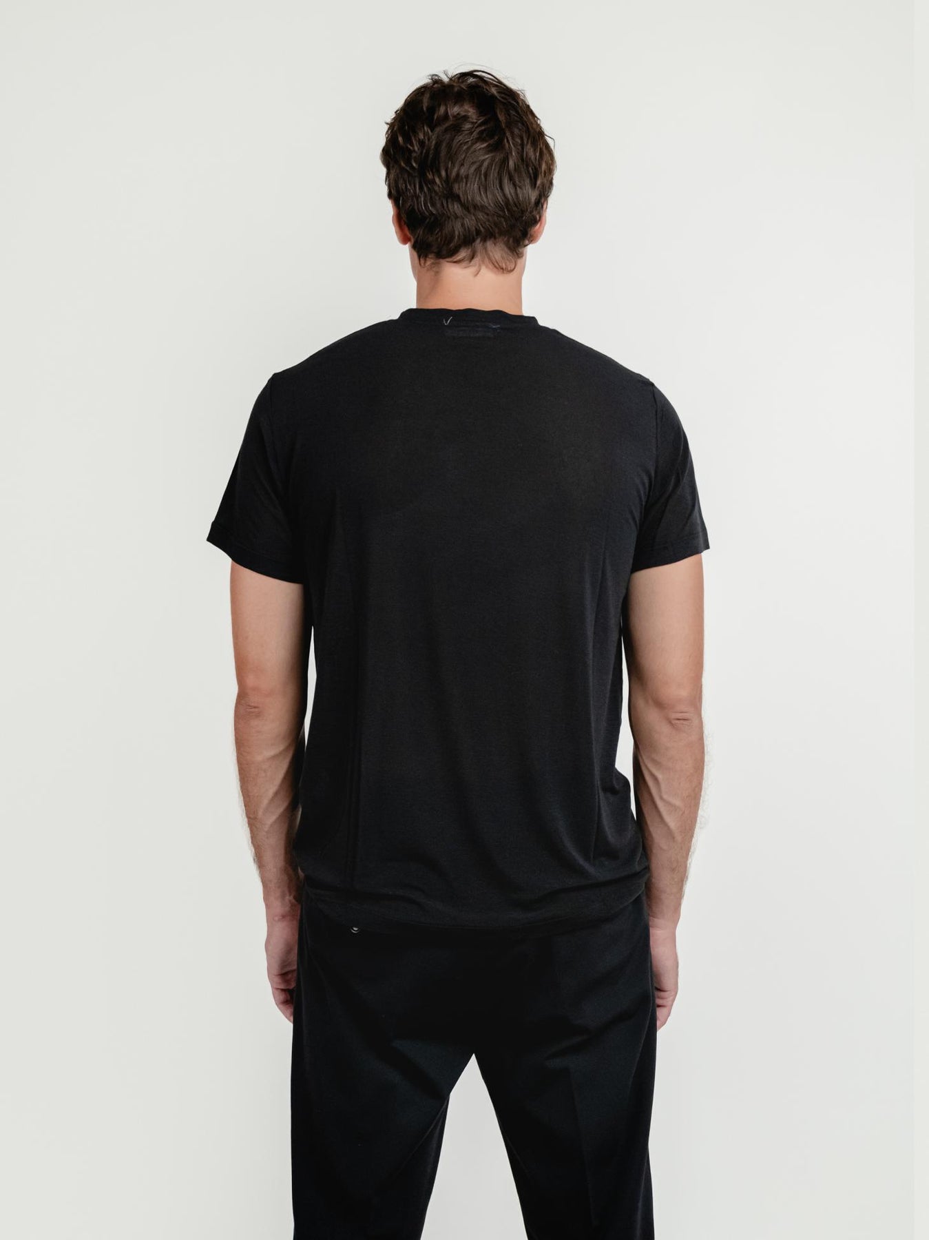 T-SHIRT GIROCOLLO IN MISTO CASHMERE NERA