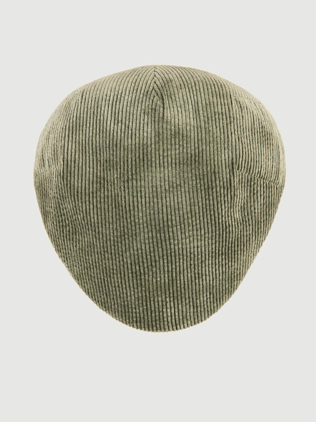 Coppola in velluto a coste. Composizione: 85% PL, 12% PA; 3% EL; Made in Italy
