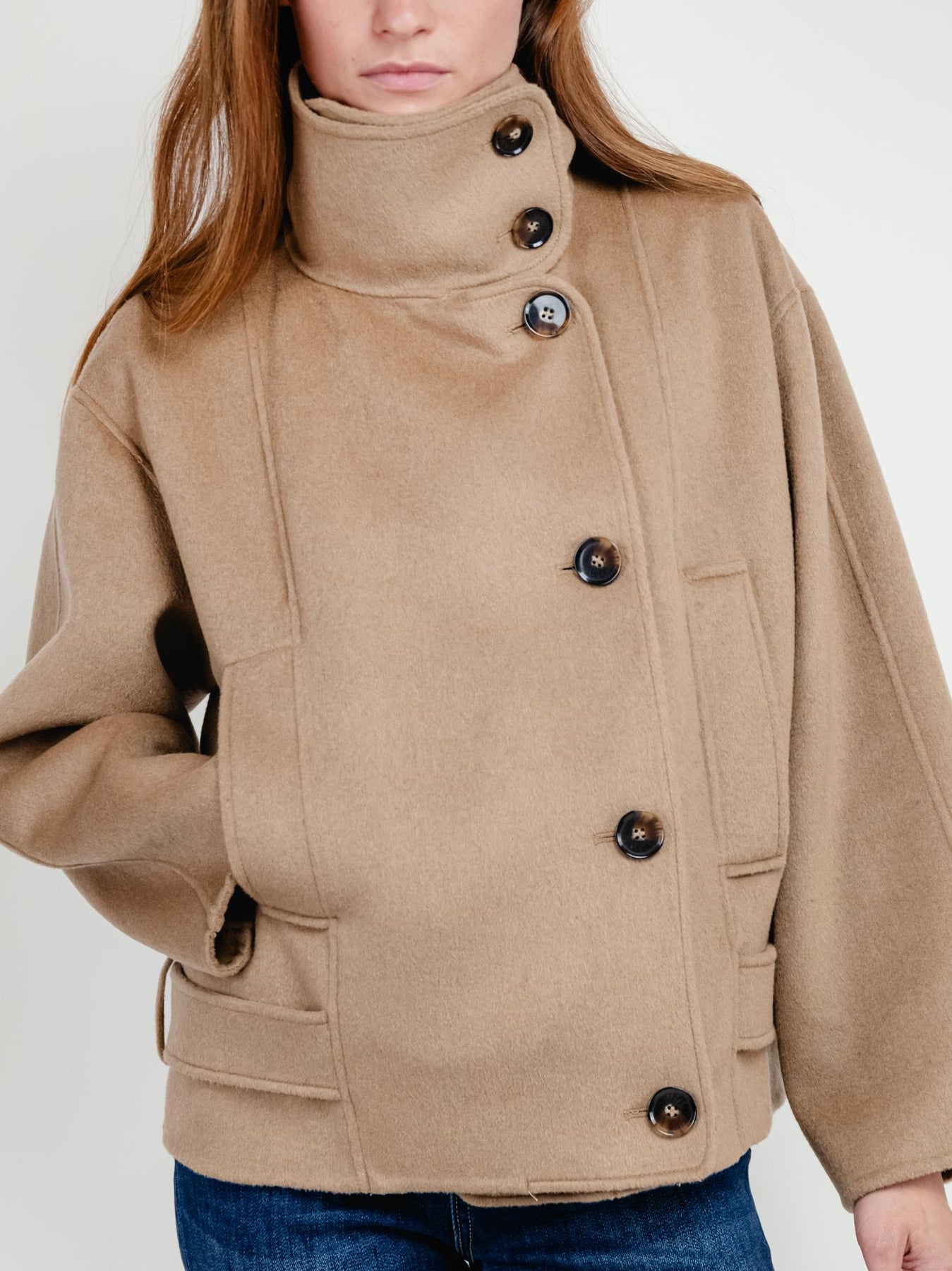 Collo alto con chiusura a bottoni per una maggior protezione dal freddo.