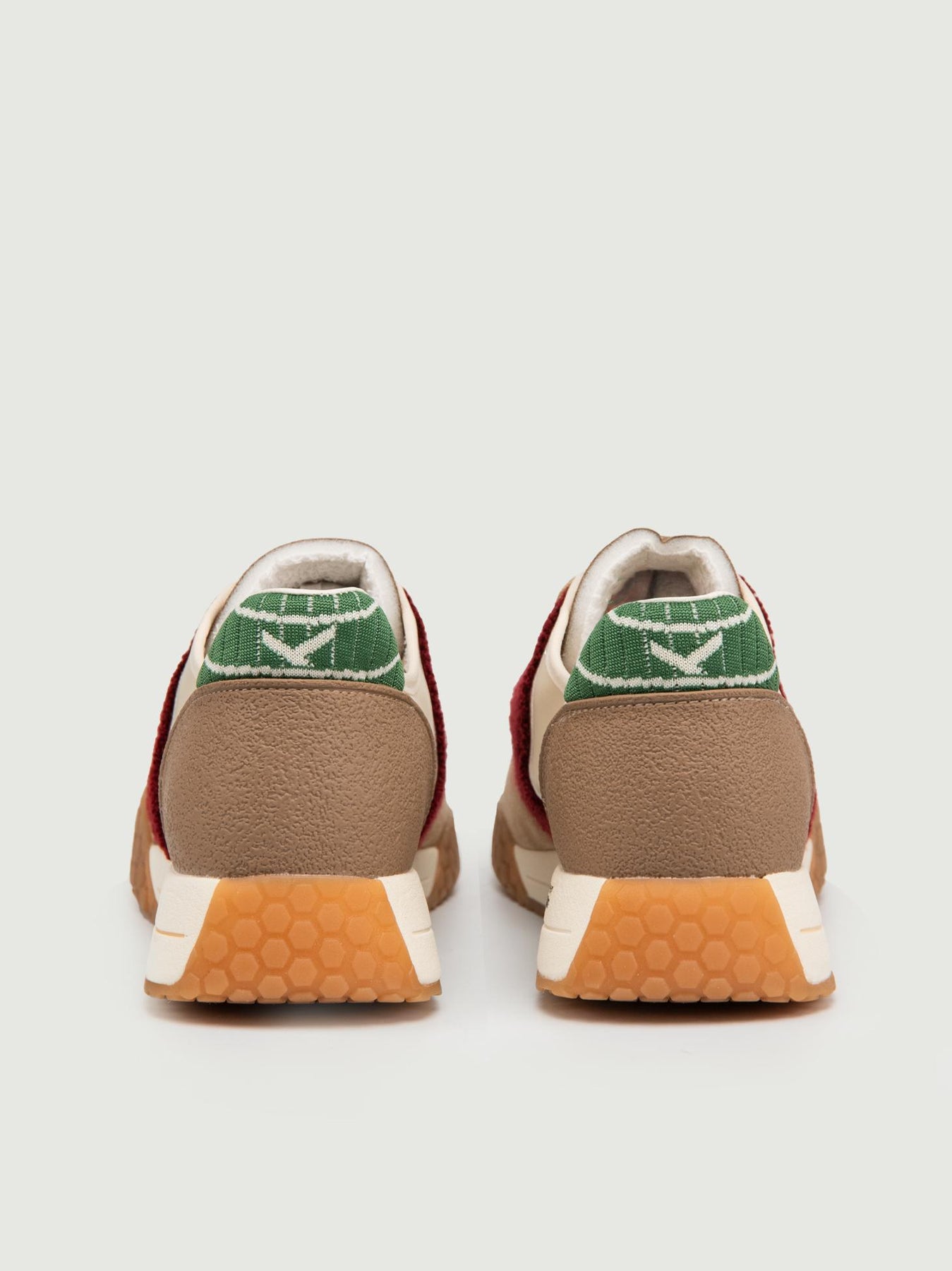Suola in gomma, con intersuola in EVA ammortizzata. Fodera in tessuto e ecopelle.