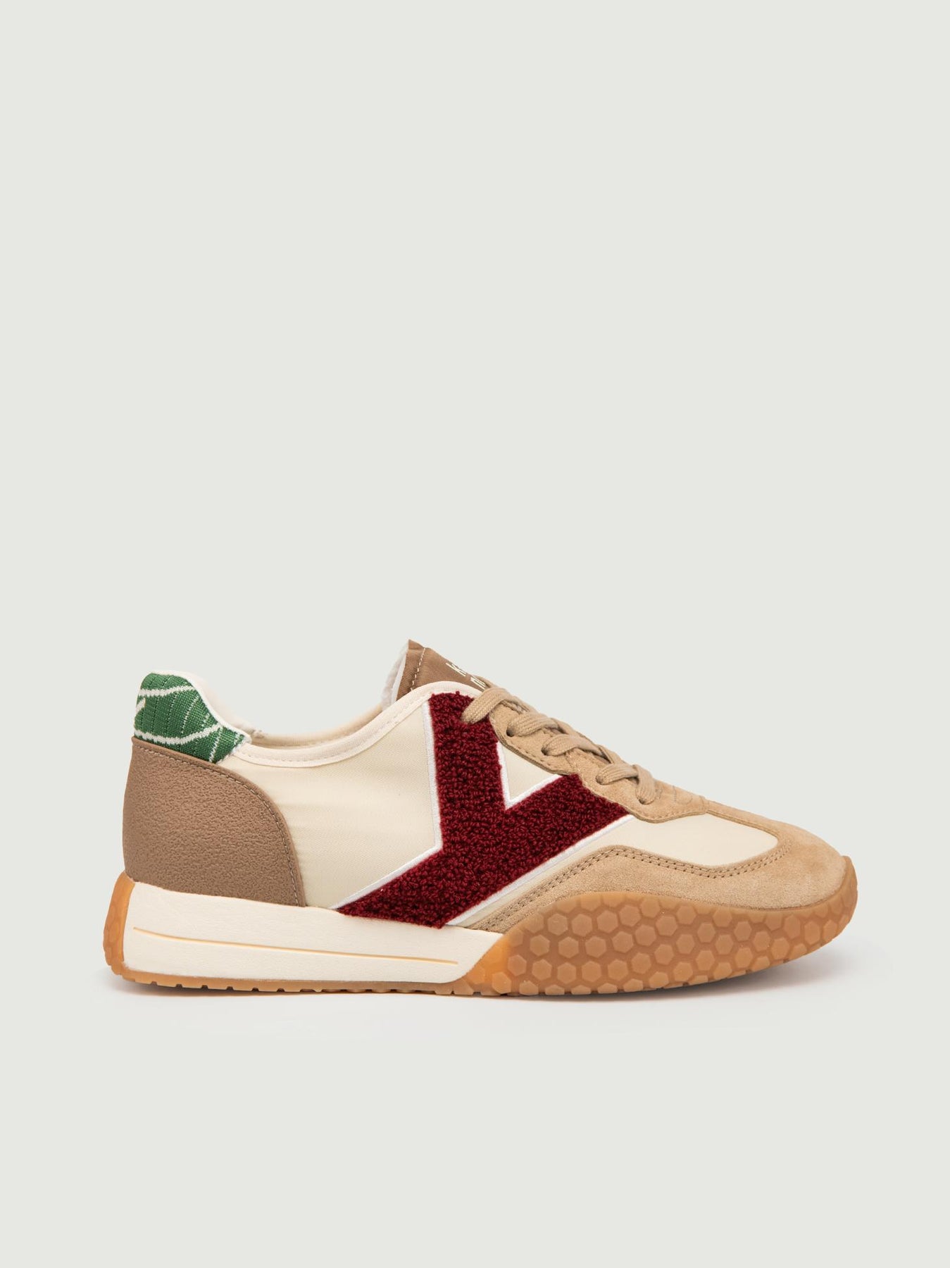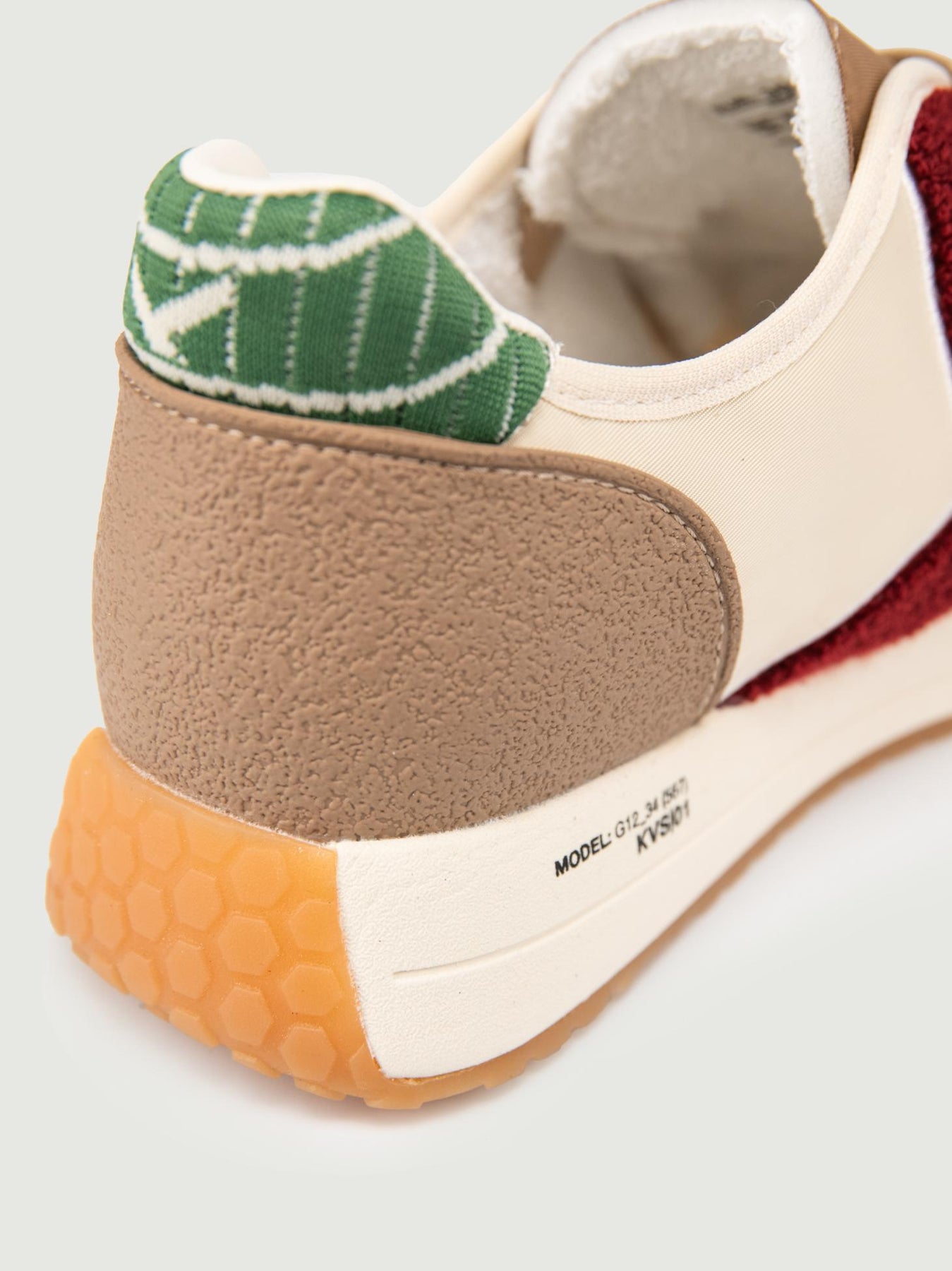 Sneaker in camoscio con inserti in nylon e logo in tessuto spugna.