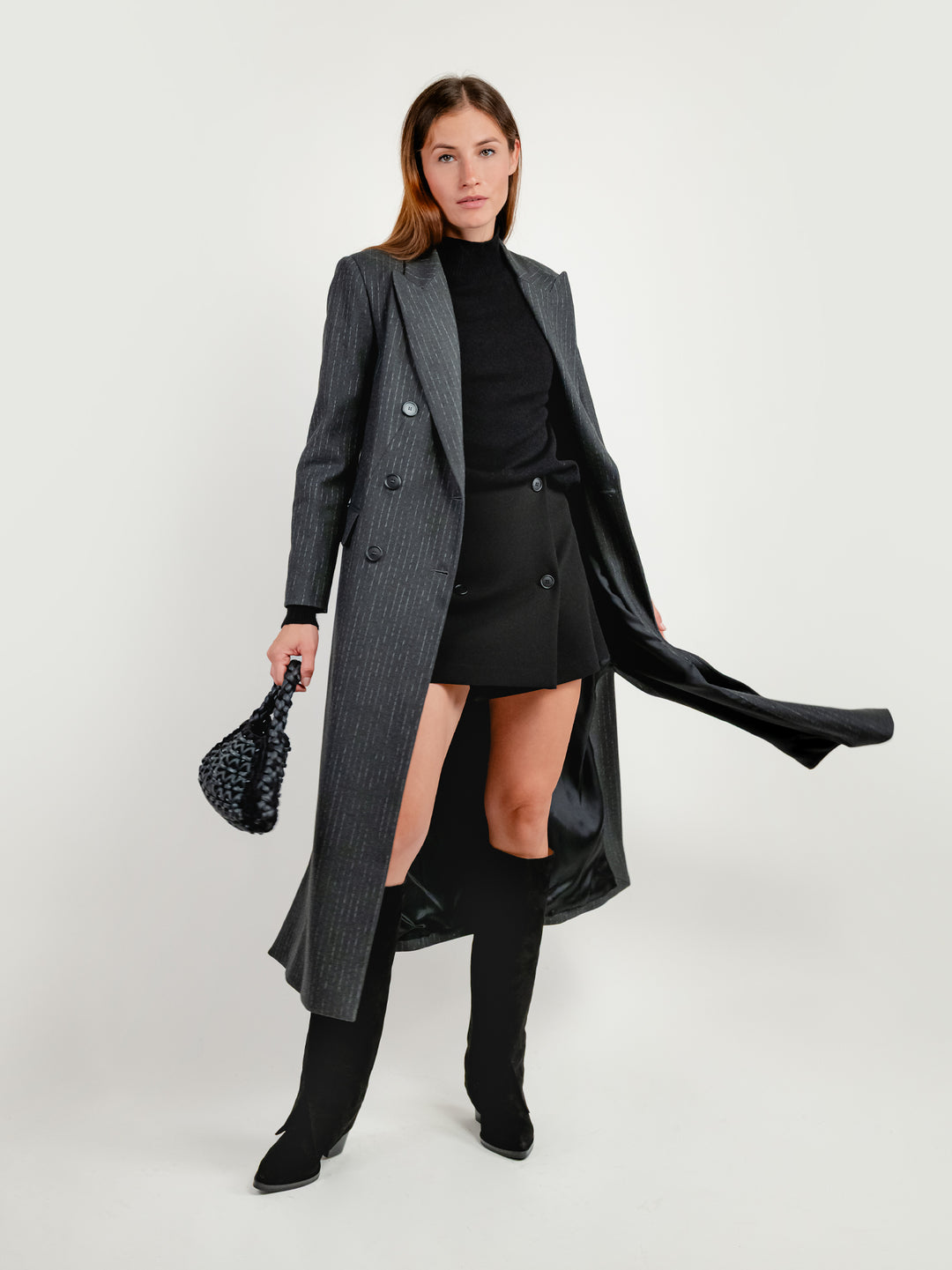 Classico e deciso, il cappotto doppiopetto è un’icona senza tempo. Le linee nette e i bottoni a vista ne sottolineano il carattere elegante, rendendolo perfetto per completare look formali o per dare un tocco strutturato agli outfit di tutti i giorni.