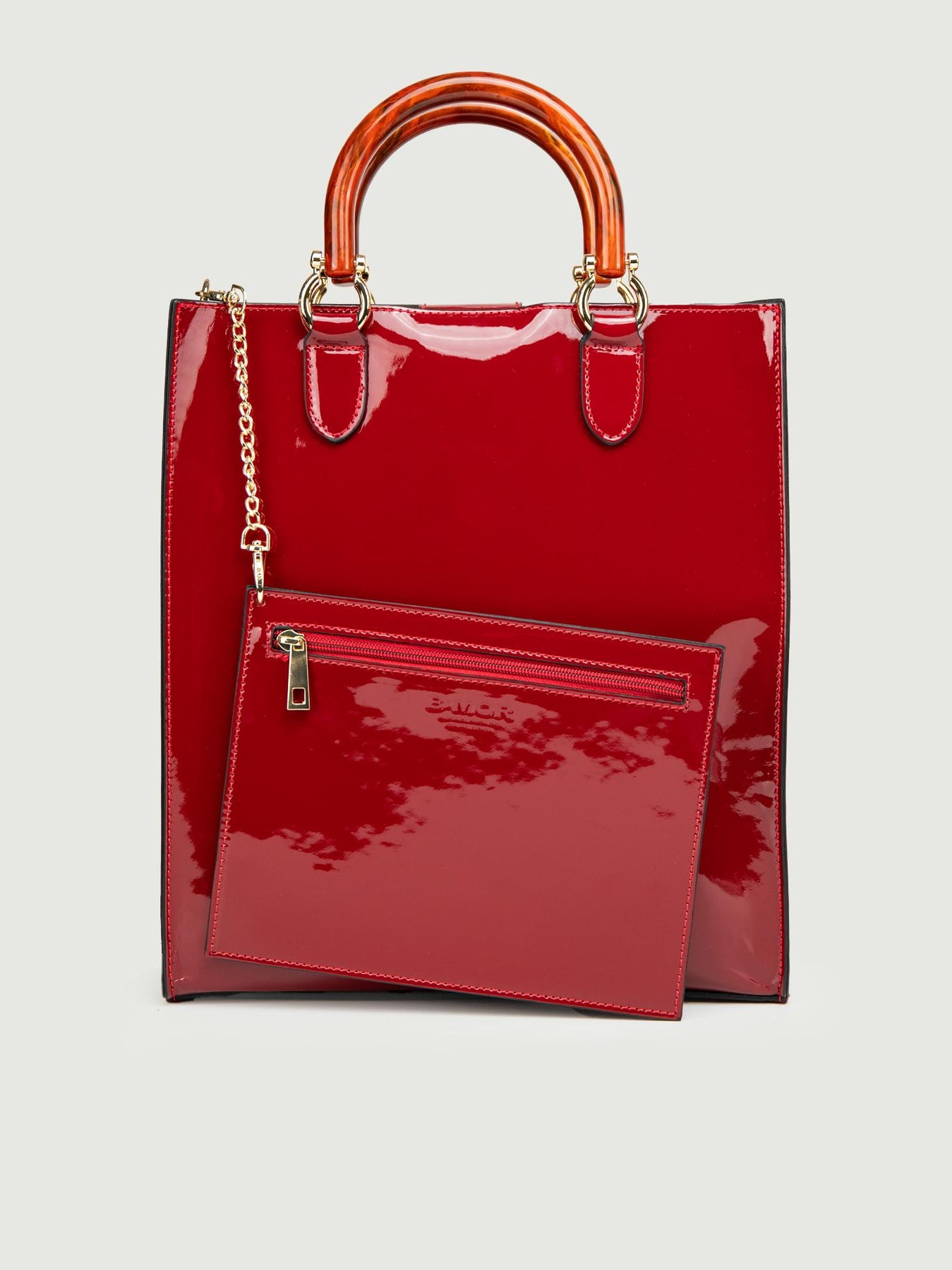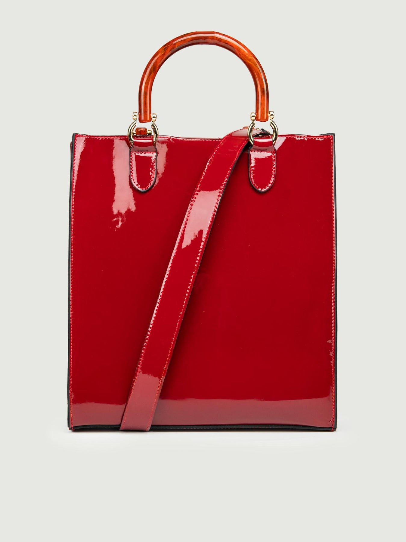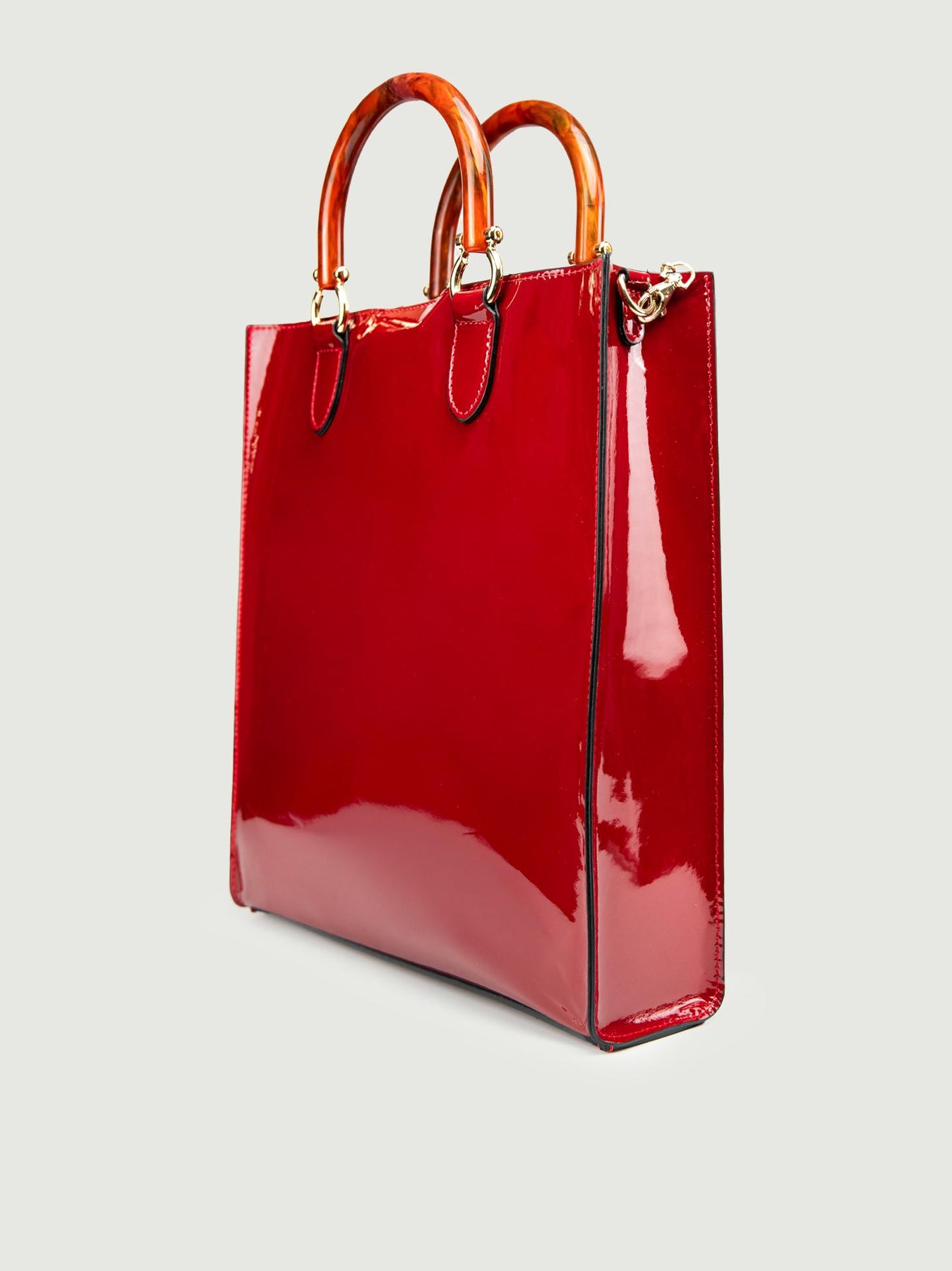 Borsa Empire a forma di cartella in pelle vernice bordeaux.
