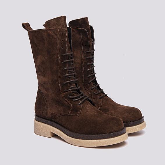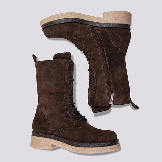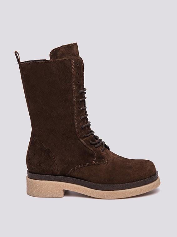 Anfibio in camoscio con maxi para in gomma a contrasto. Doppia chiusura a lacci frontale e con zip in tonalit+á laterale per una calzata semplice e pratica. Altezza para: 4,5 cm. Tomaia e fodera in vera pelle di camoscio. Suola in gomma.