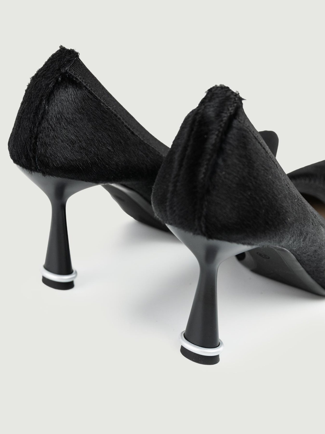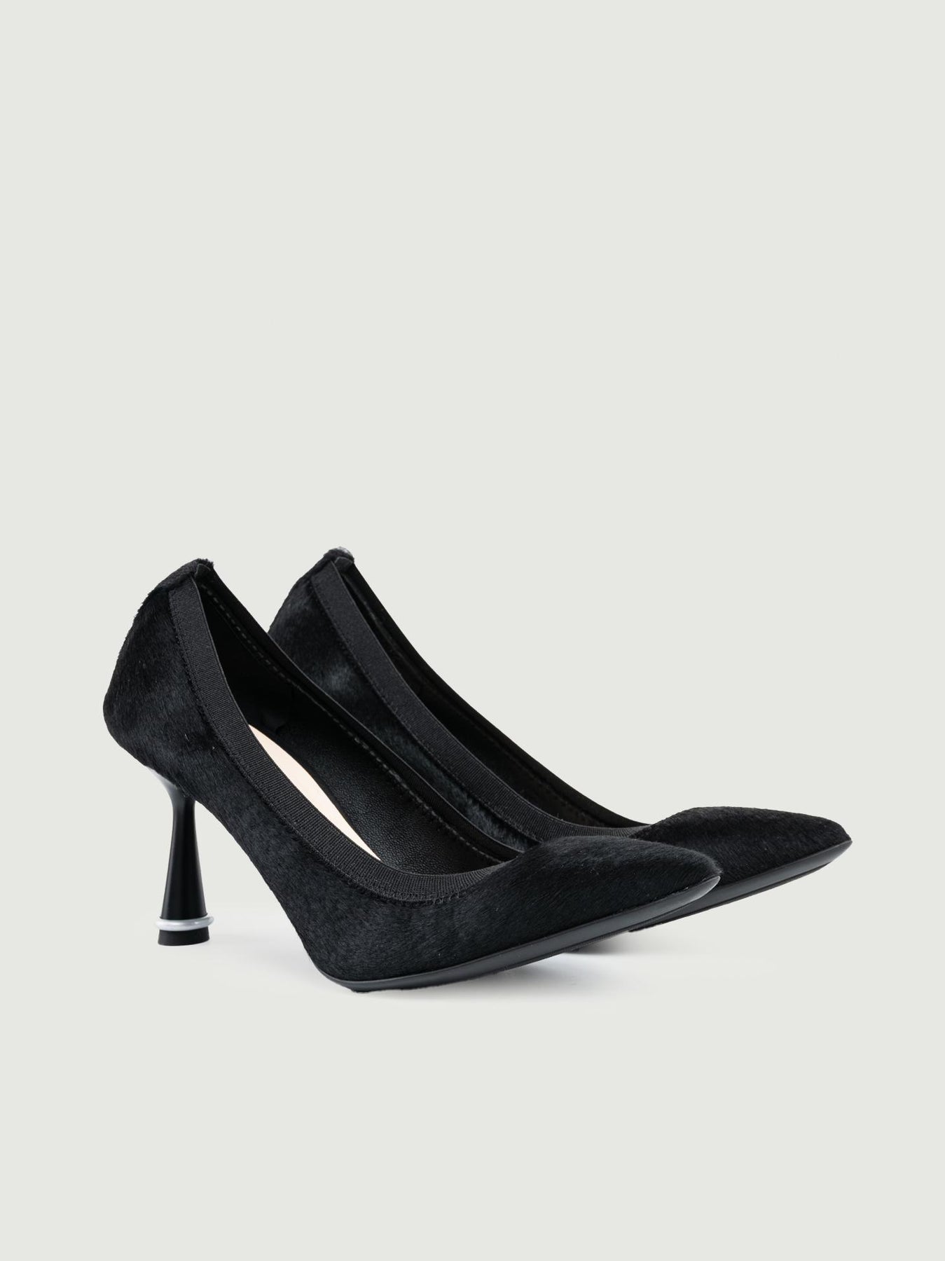 Décolleté in cavallino con profili in tessuto elasticizzato in tonalità per rendere la calzata pià agevole e confortevole