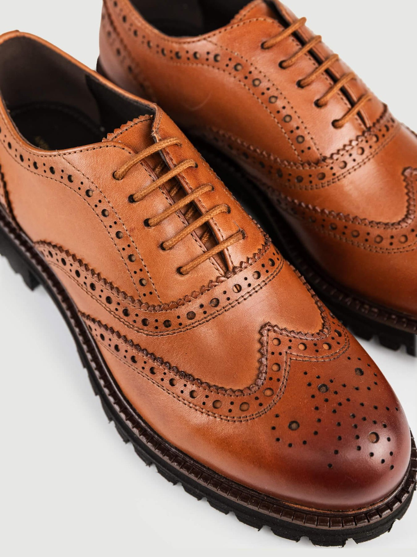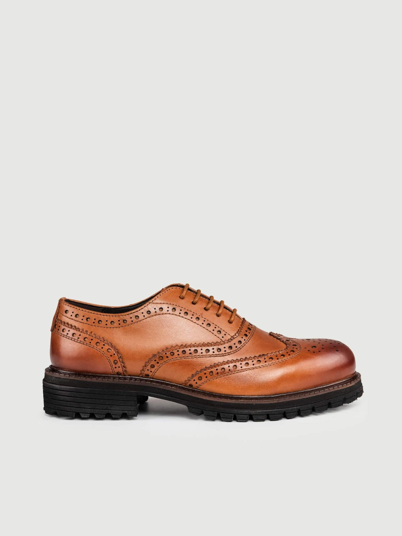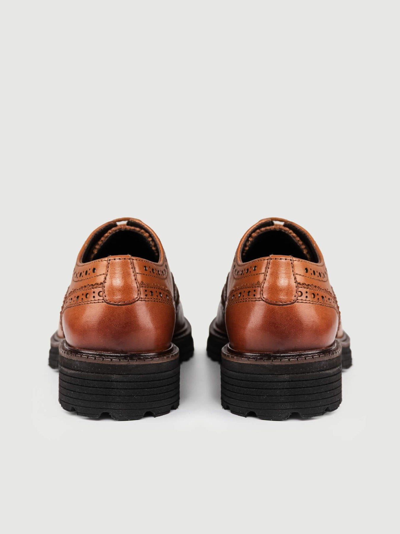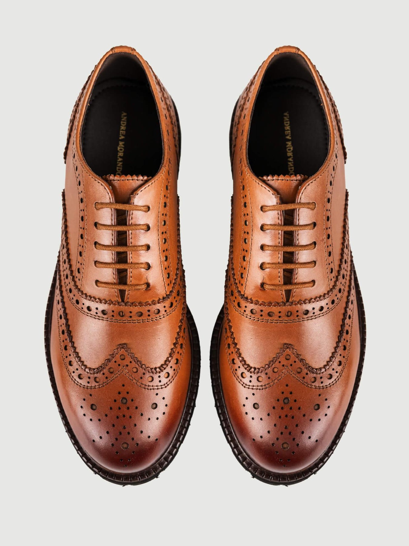Francesina in pelle tabacco Effetto sfumato in punta e sul retro Para carrarmato Composizione: Pelle, gomma Made in Italy Designer: Andrea Morando