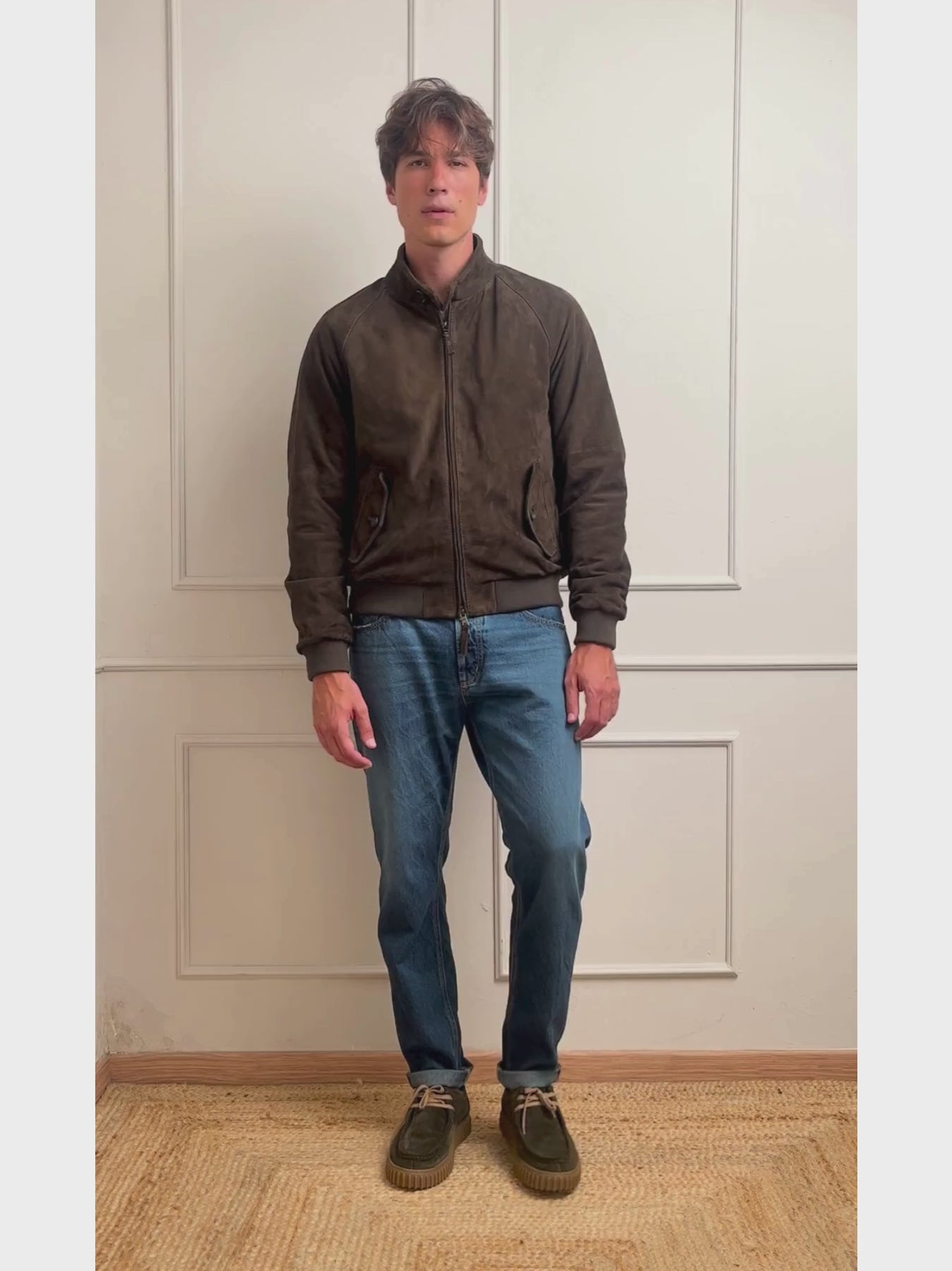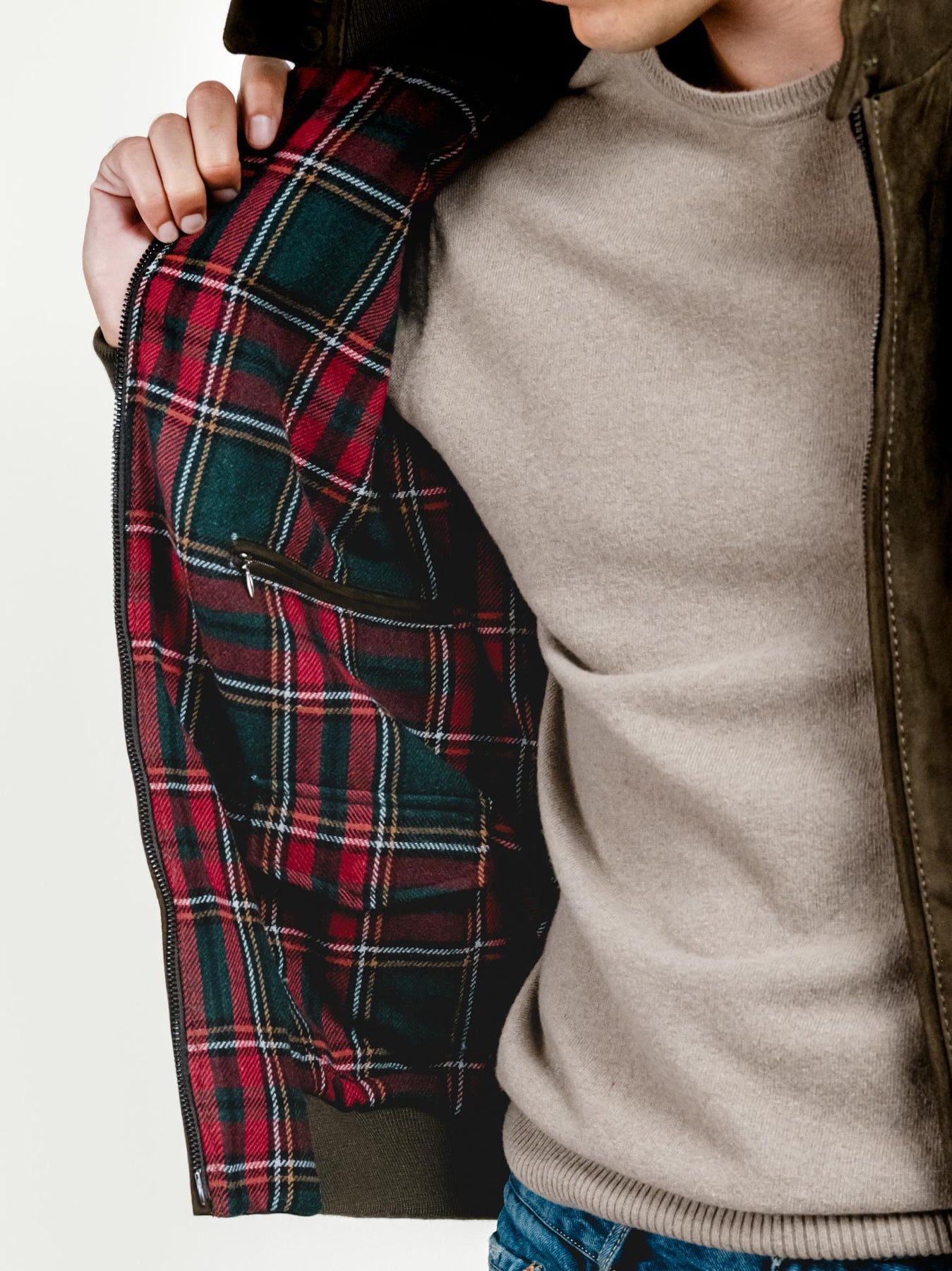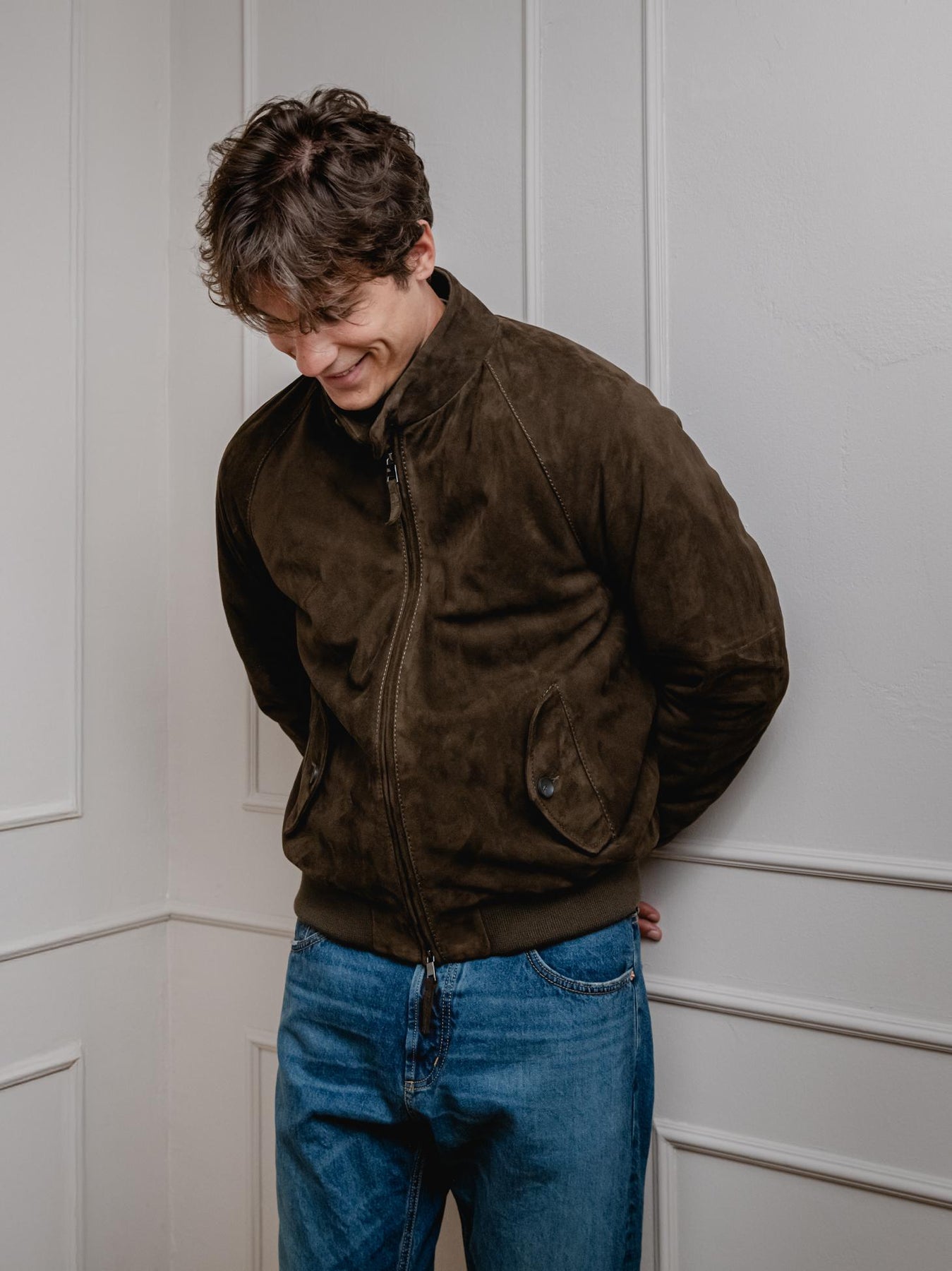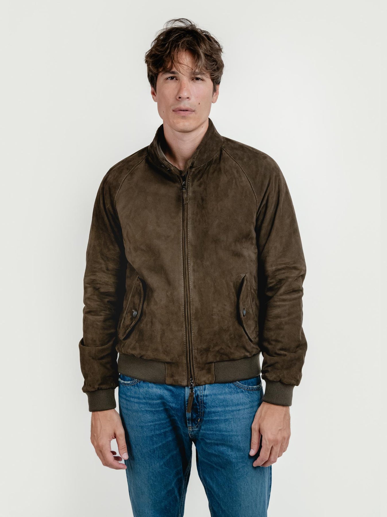 Giubbotto in pelle scamosciata color nocciola modello Ethan.