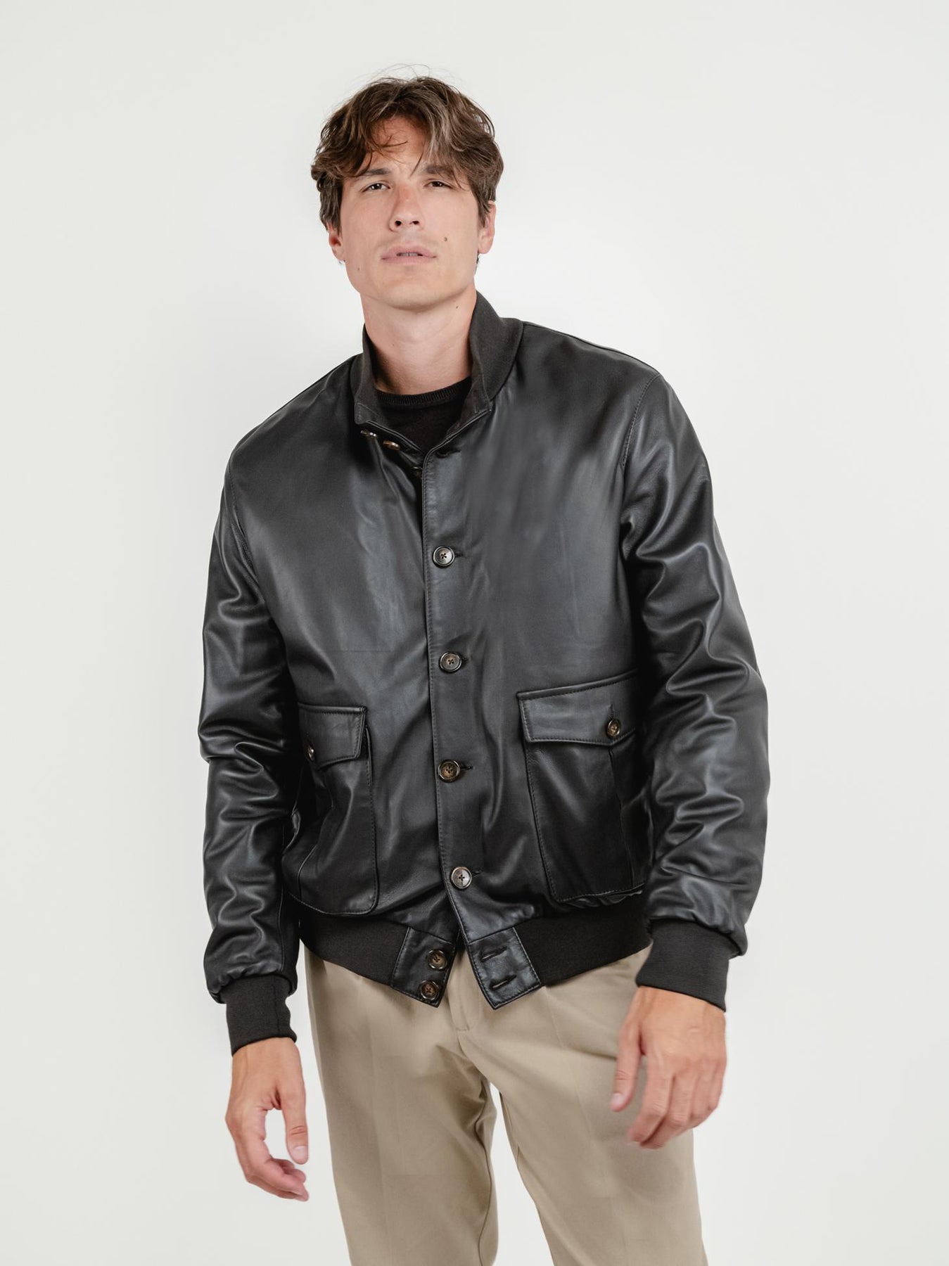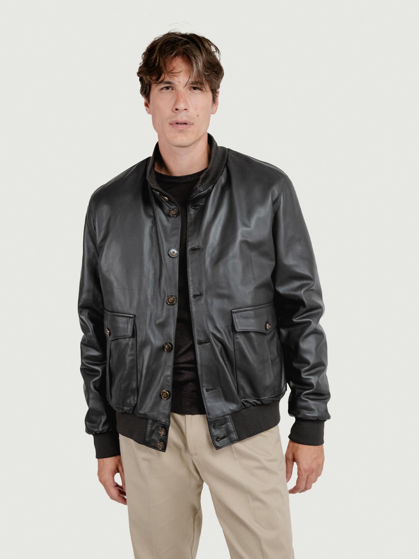Giubbotto in pelle testa moro.