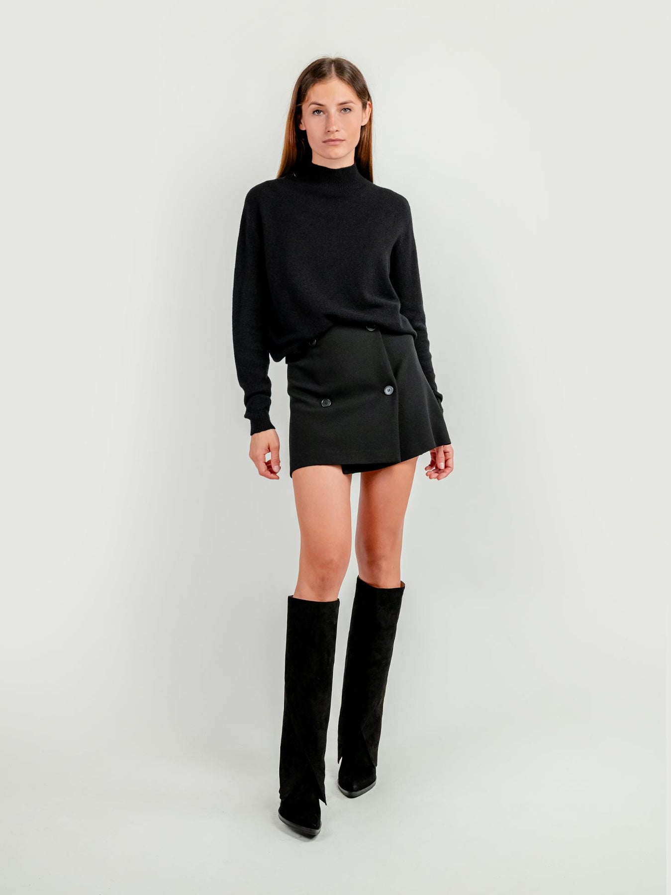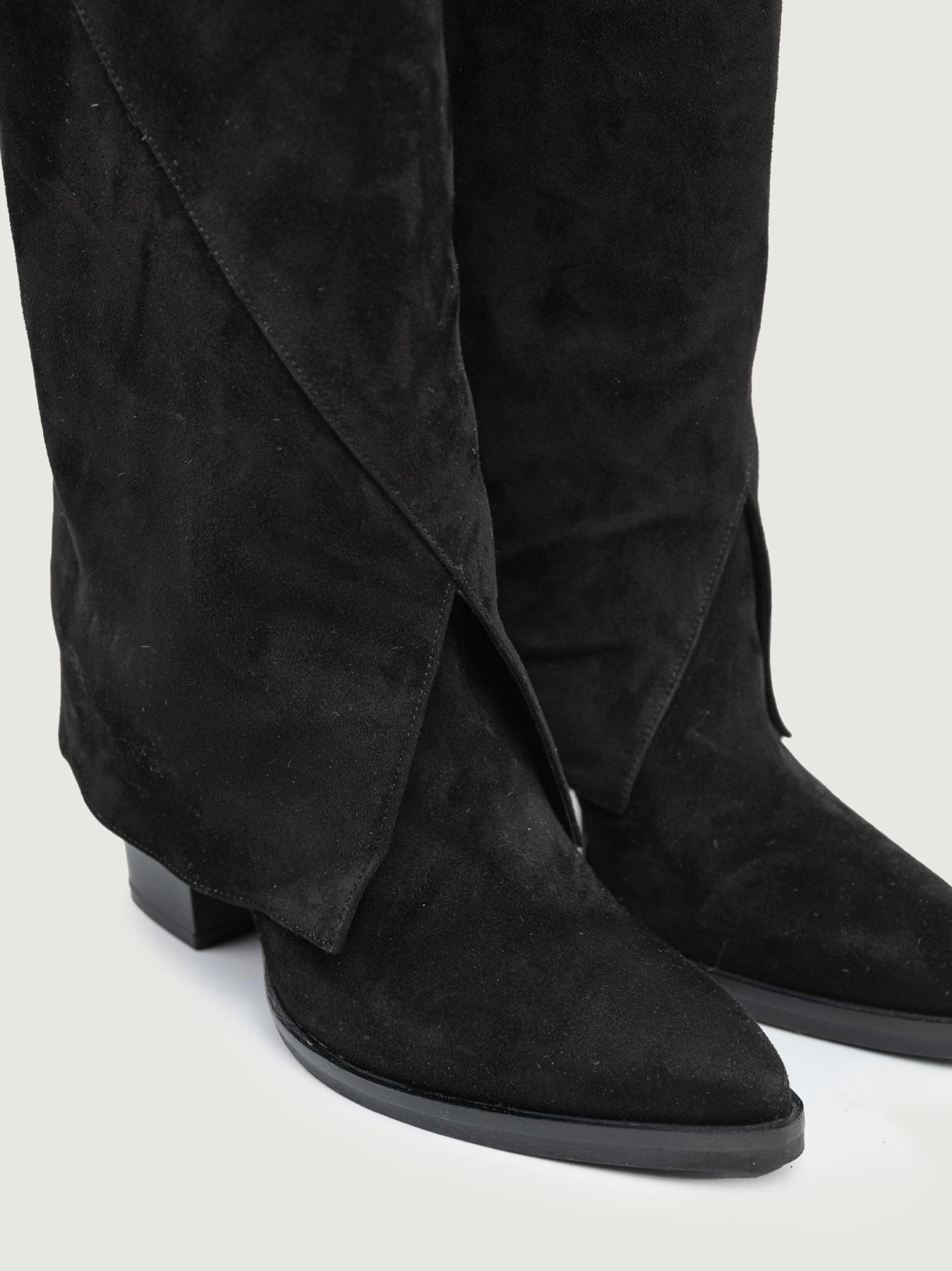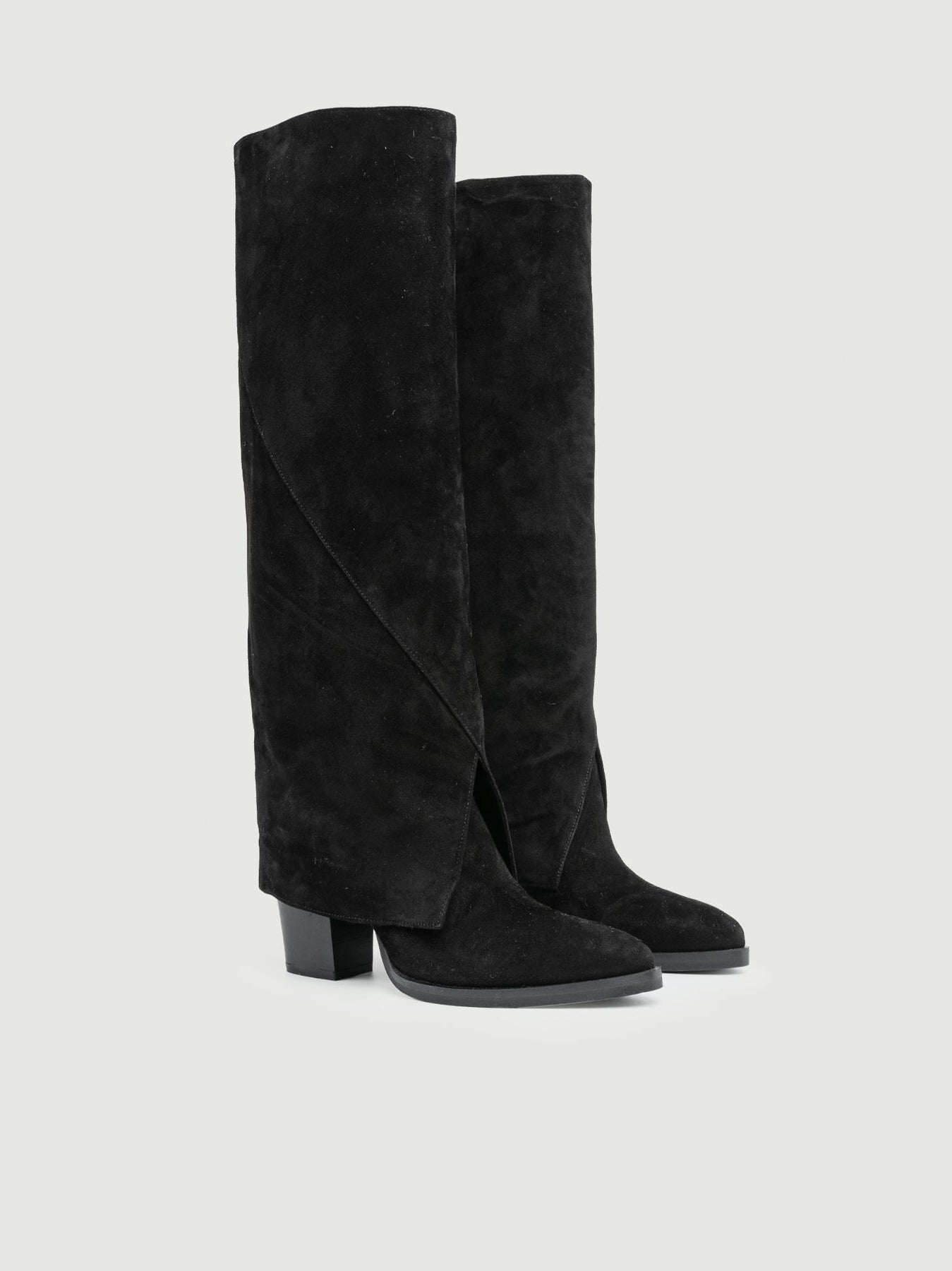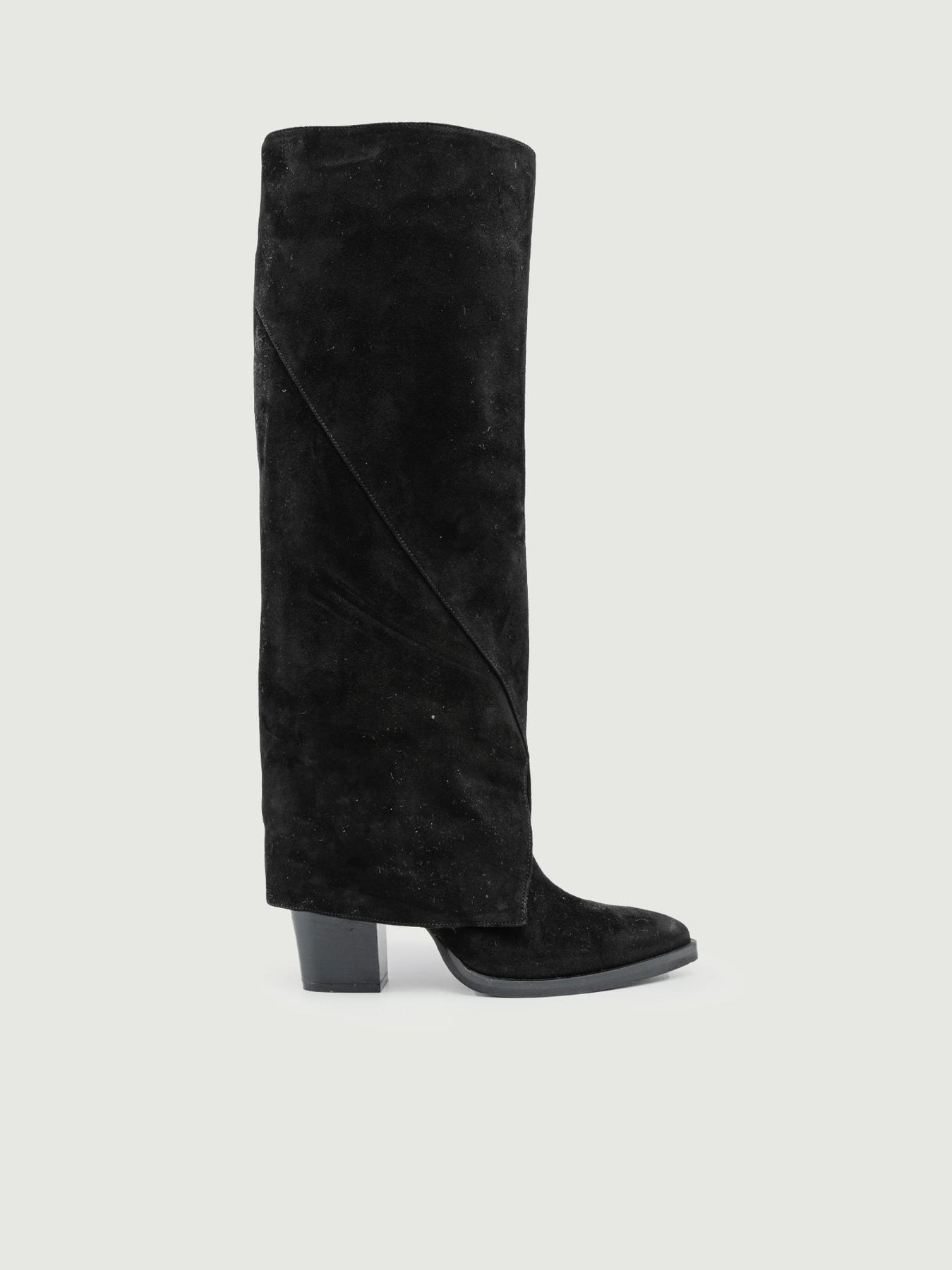 STIVALE IN PELLE SCAMOSCIATA NERA CON MAXI RISVOLTO