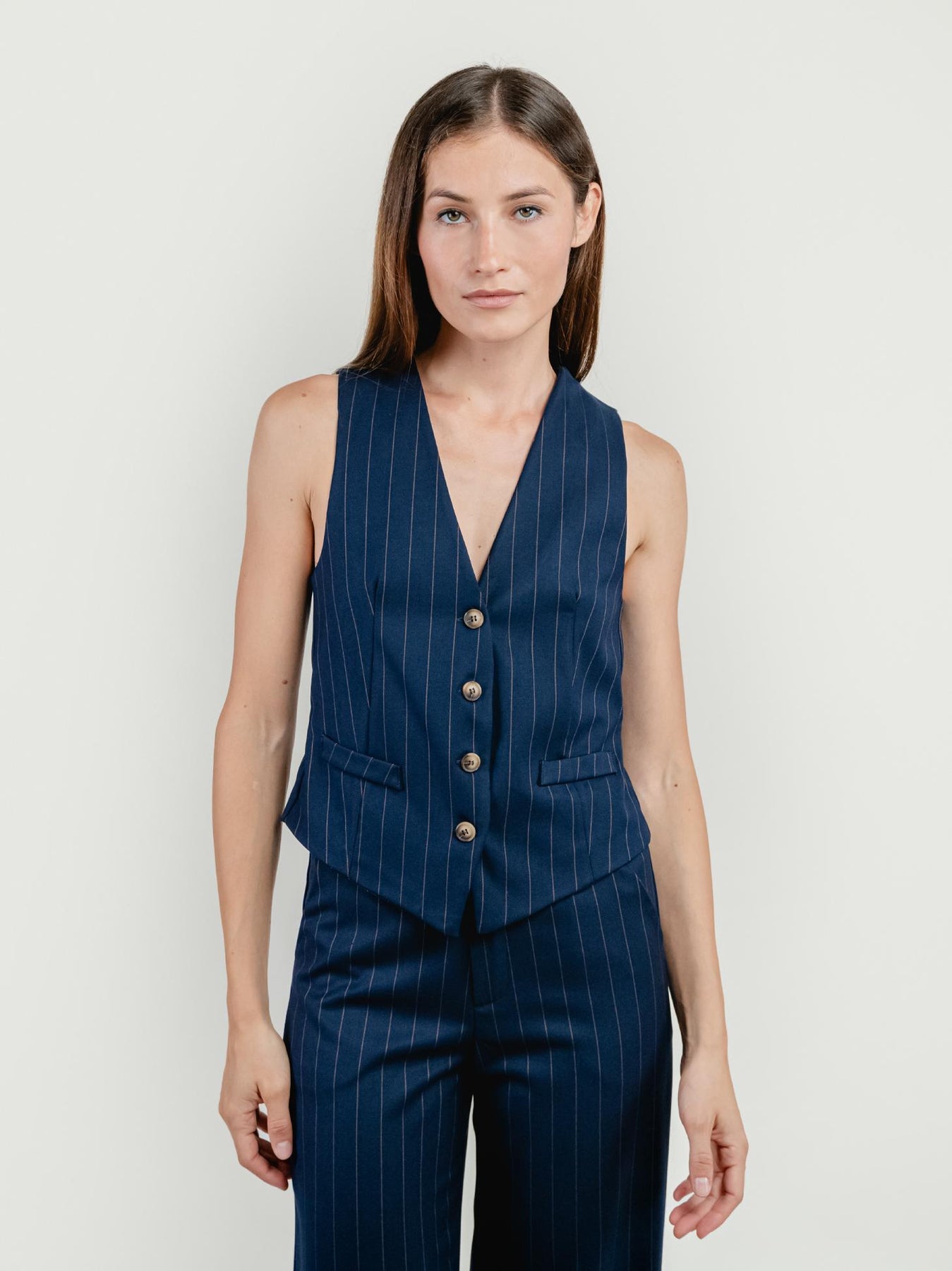GILET MONOPETTO GESSATO BLU 9933 GESSATO ANDREA MORANDO