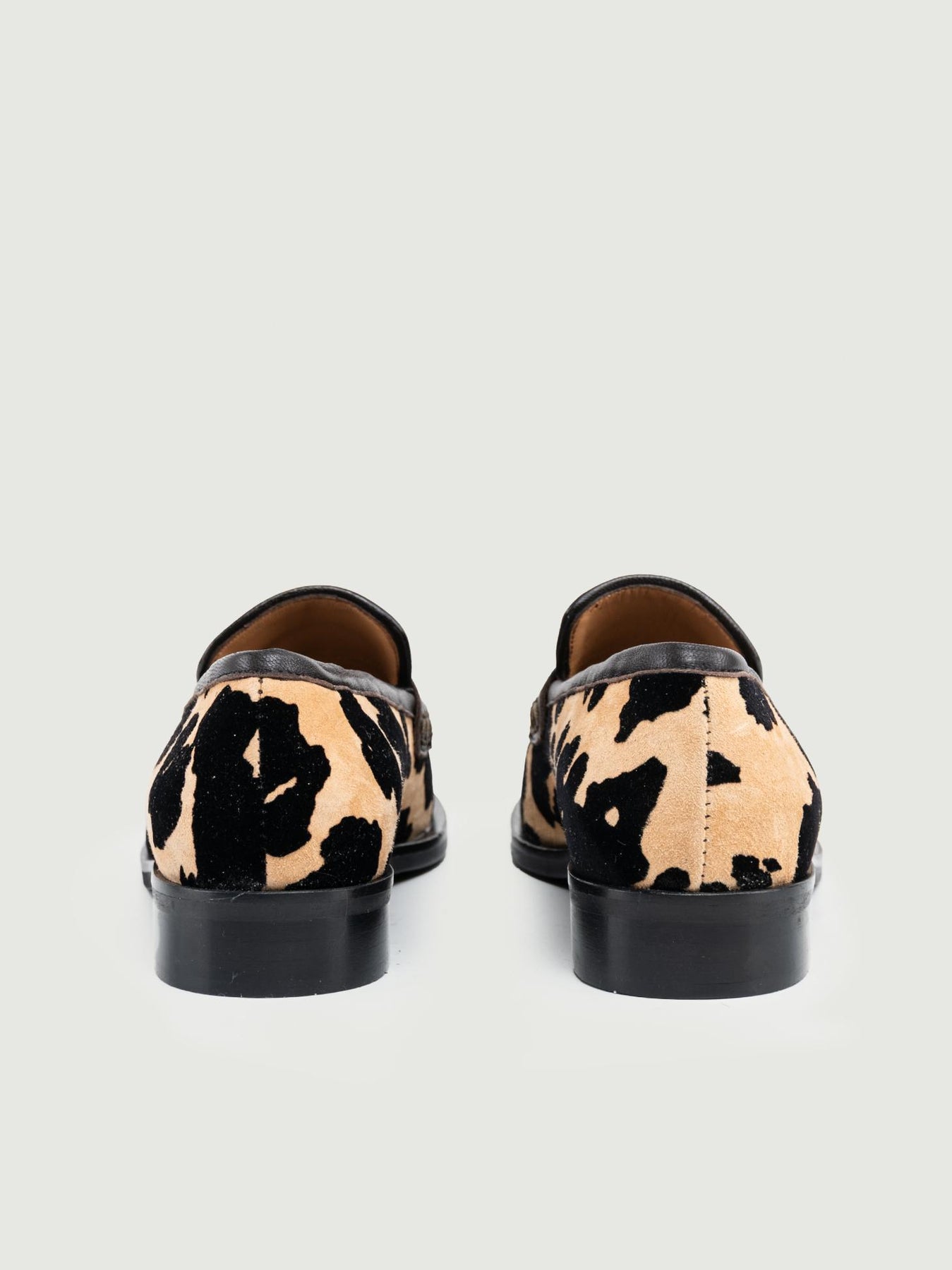 Mocassino penny in pelle scamosciata cuoio con fantasia muccata realizzata tramite inserti di velluto nero Dettaglio inserti in pelle testa moro Tomaia: pelle Fodera: pelle Suola: gomma Altezza para: 2,5 cm. Made in Italy Designer: Andrea Morando