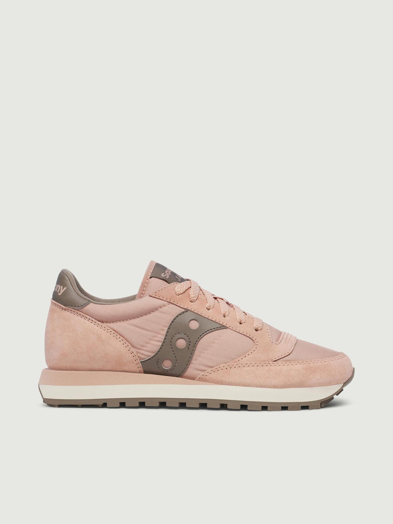 Sneaker Original Jazz realizzata da Saucony nella colorazione rosa anrtico con inserti marroni a contrasto .