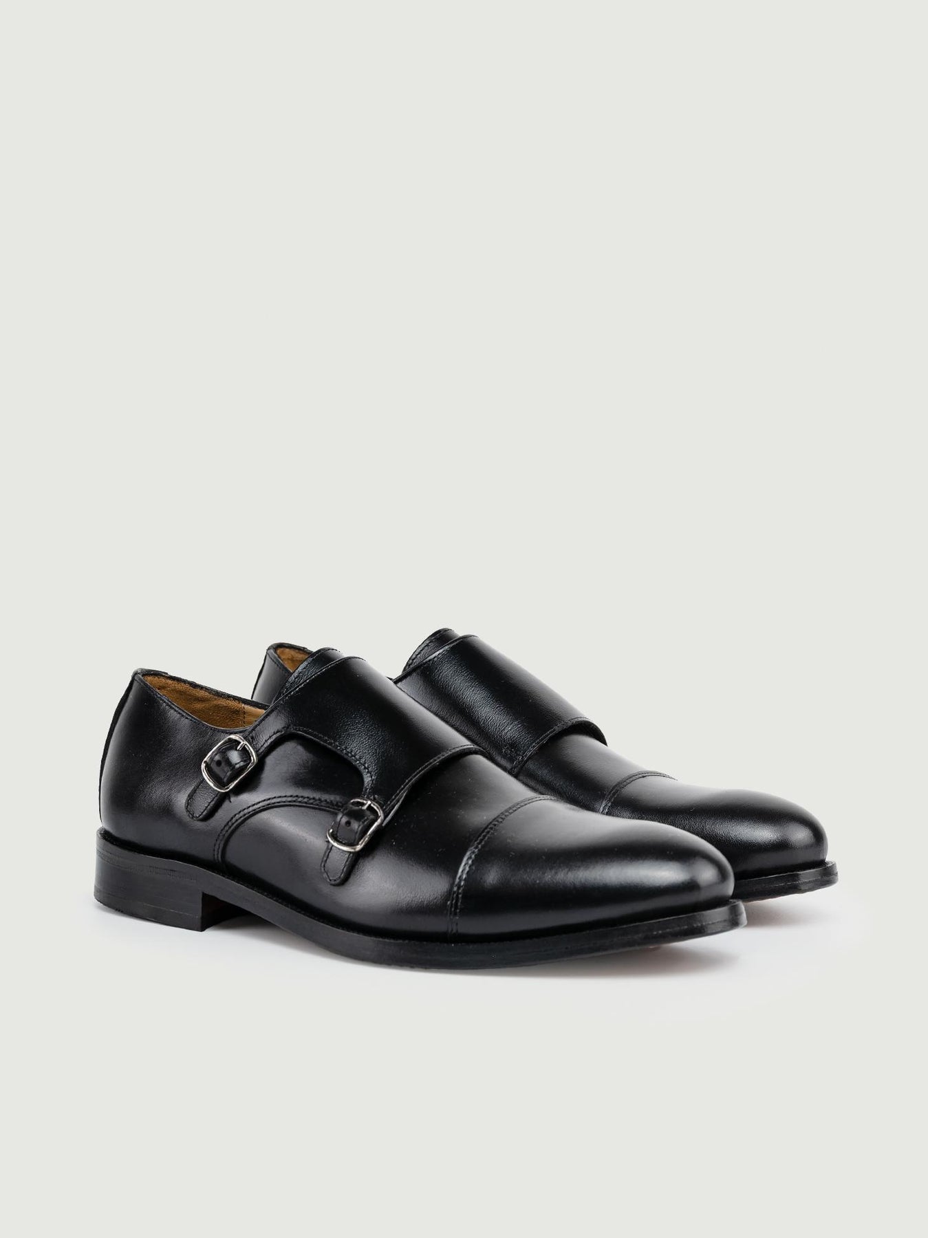 DOPPIA FIBBIA IN PELLE NERA 1441 BLACK SAXONE