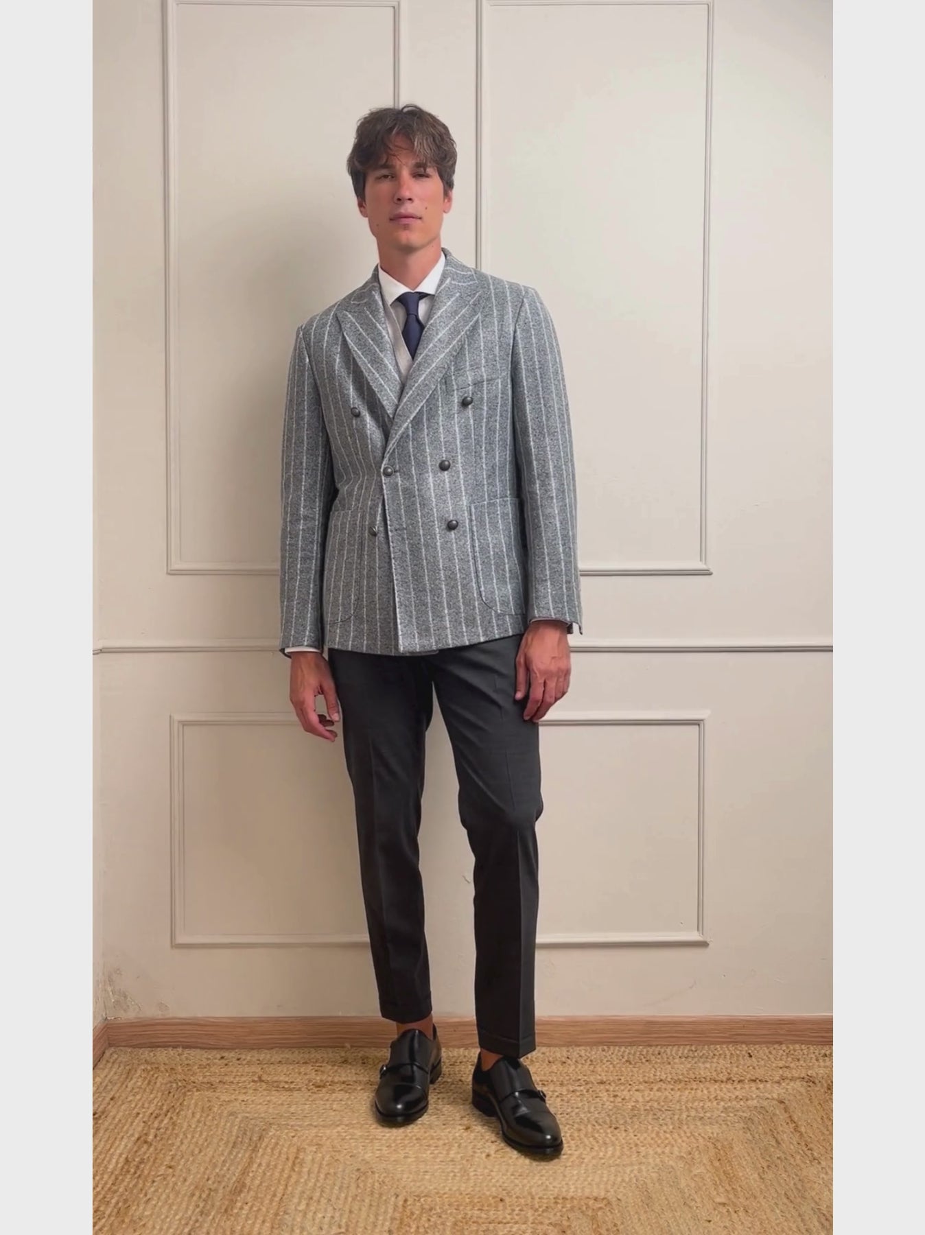 BLAZER DOPPIOPETTO MISTO LANA GESSATO GRIGIO