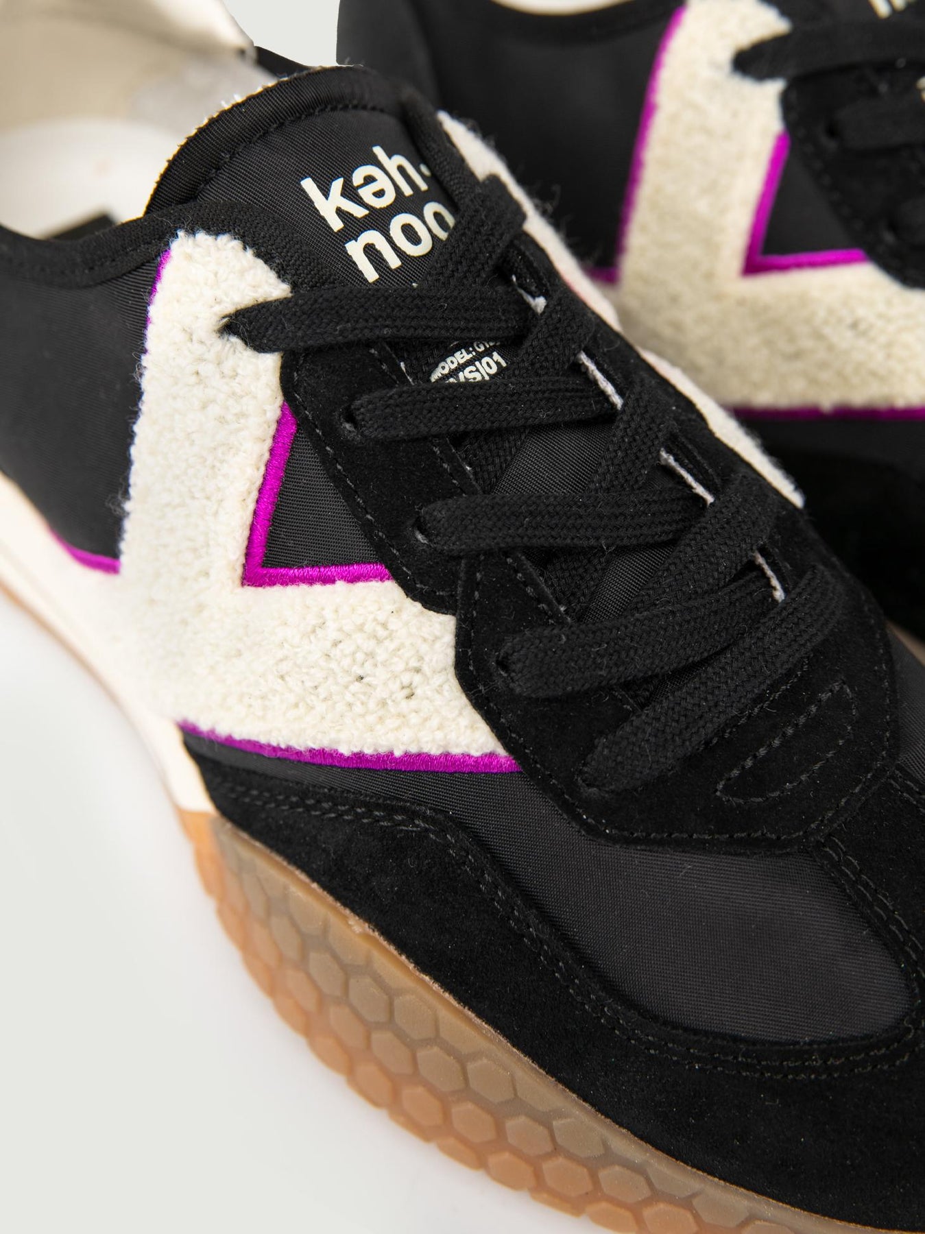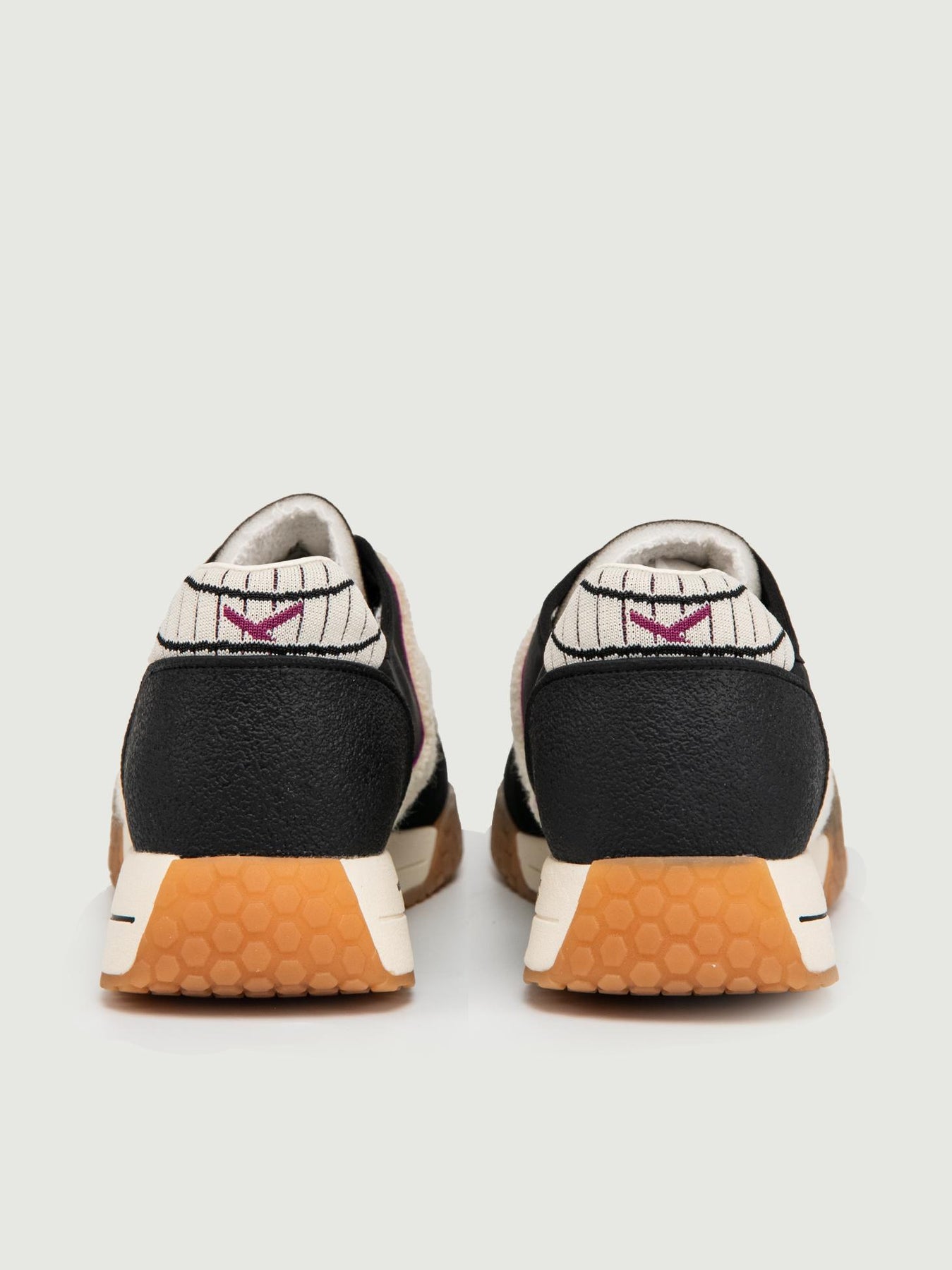 Sneaker in camoscio con inserti in nylon e logo in tessuto spugna.