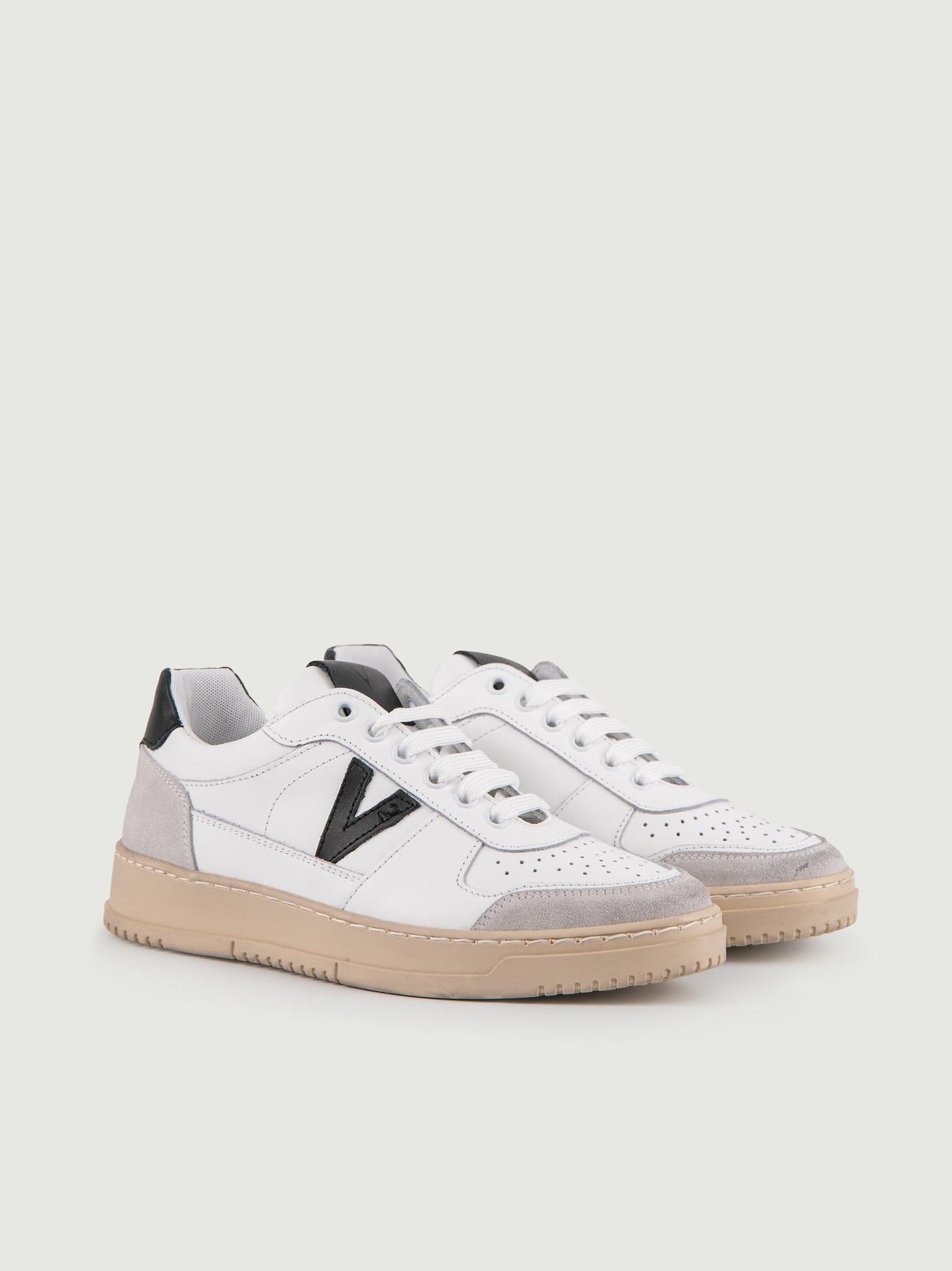 Sneaker in pelle bianca con rinforzi in pelle scamosciata.