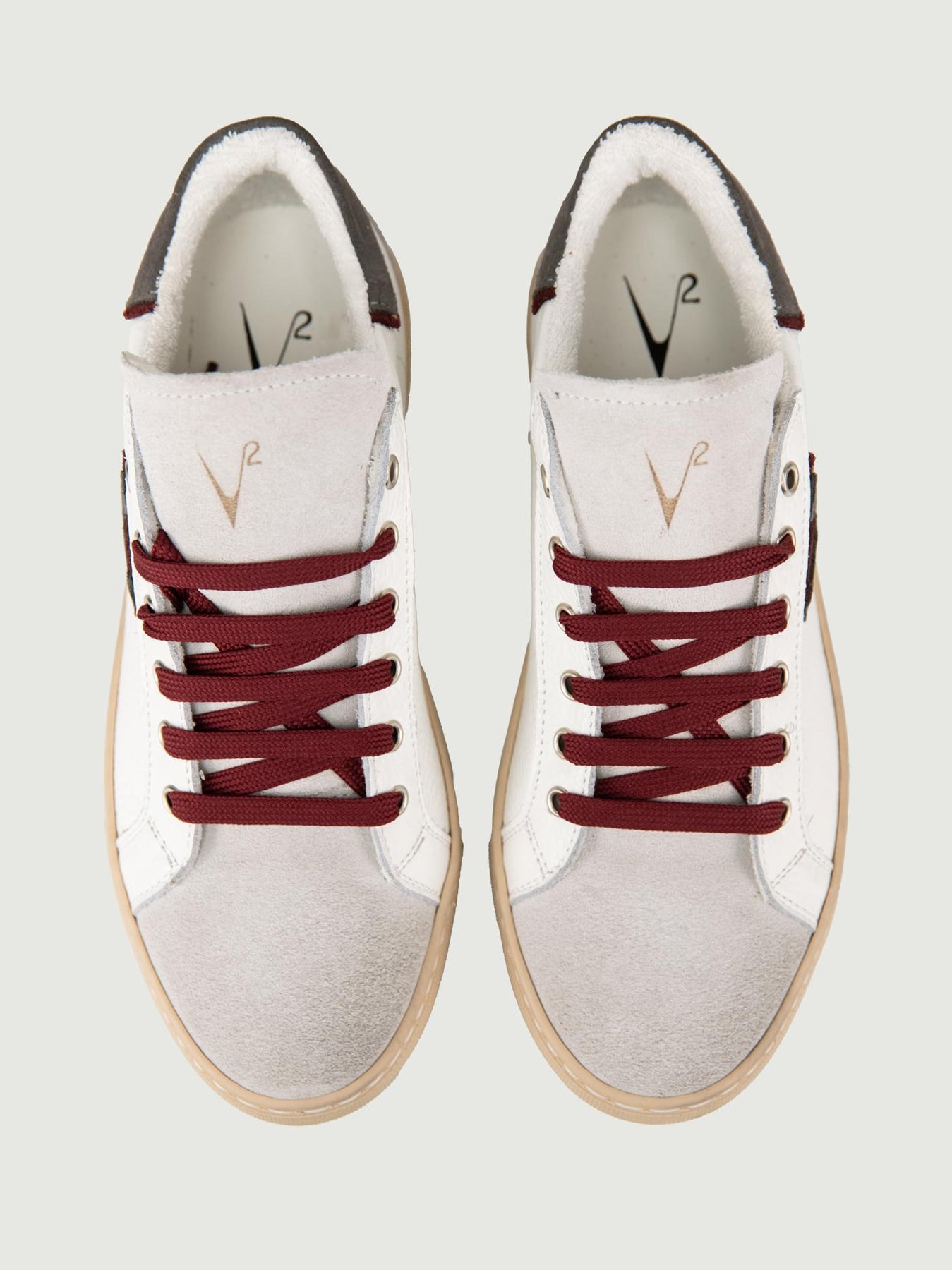 Sneaker in nappa con inserti in pelle scamosciata Fondo a cassetta beige a contrasto.