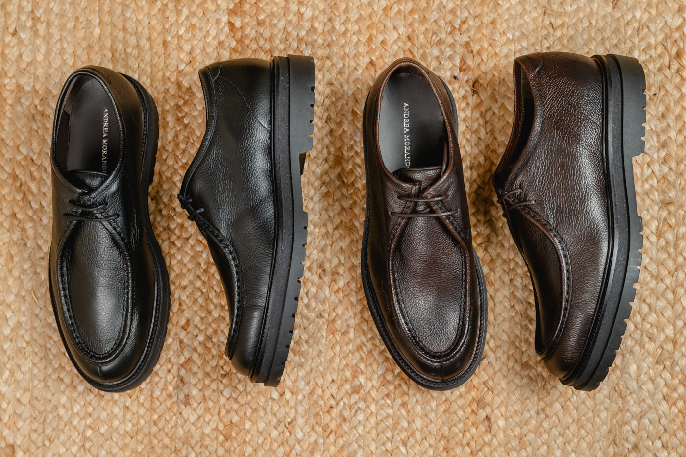 Tomaia cucita alla suola tramite la lavorazione norvegese, una tecnica che assicura solidità, flessibilità, impermeabilità e la possibilità di essere riparate.