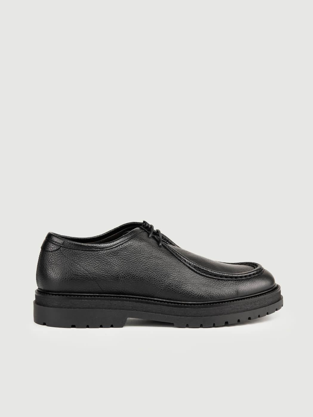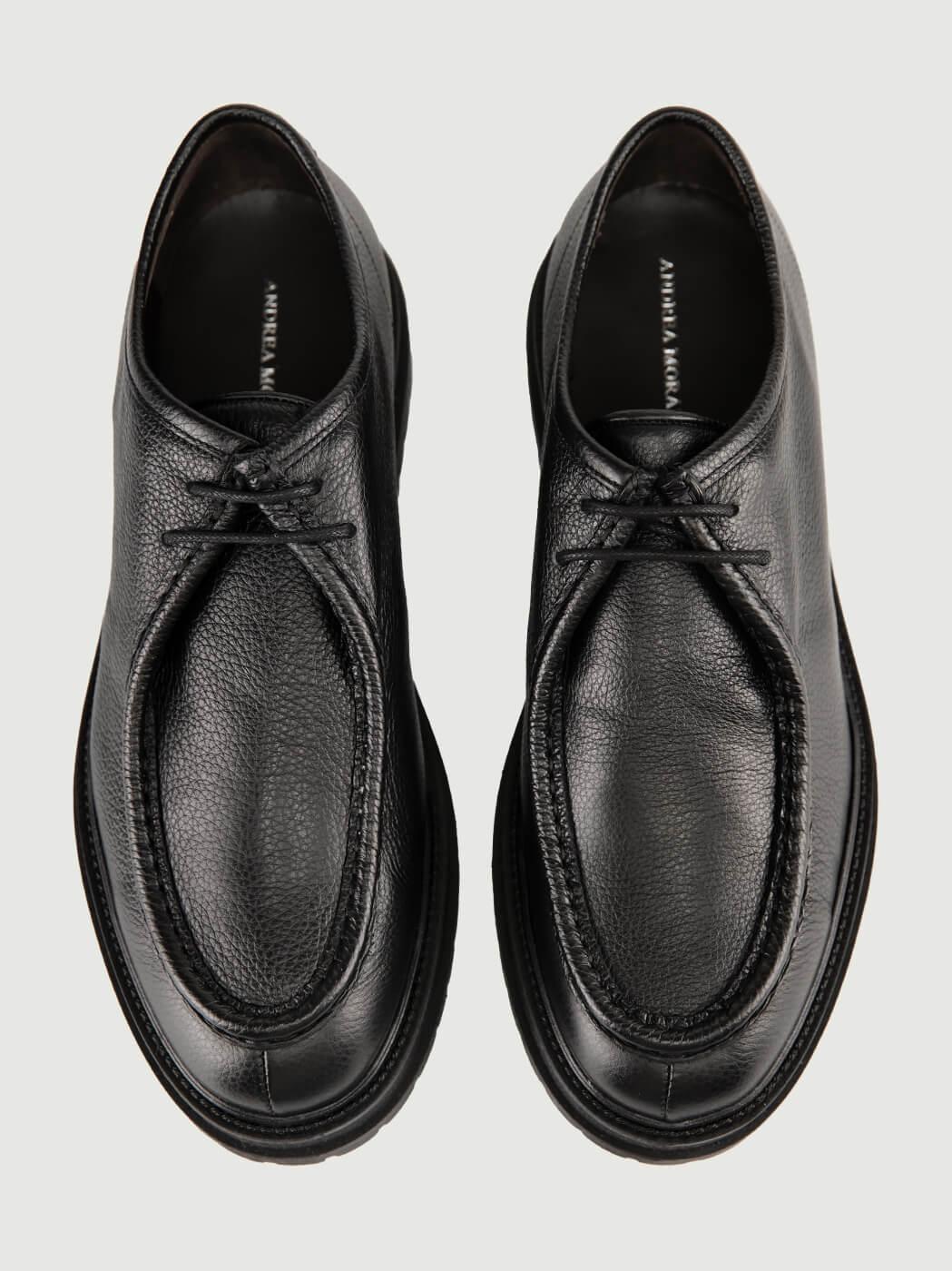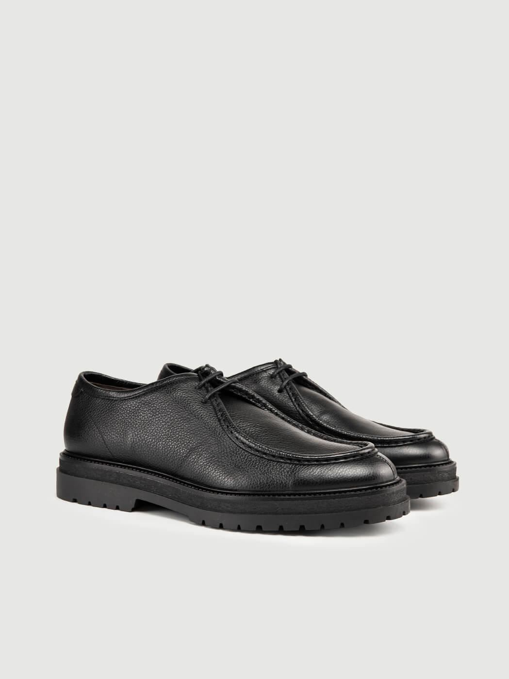 Stringata in pelle martellata nera.